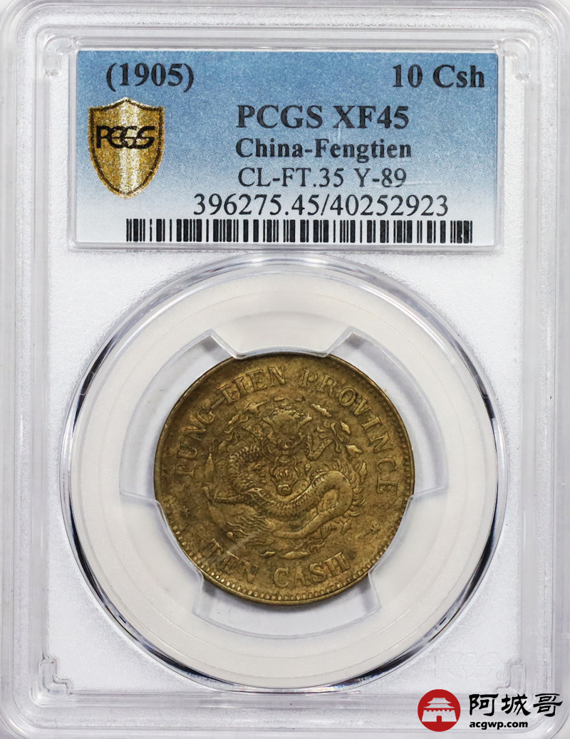 Lot:39 原味 奉天光绪 乙巳 当十 铜币 PCGS XF 45