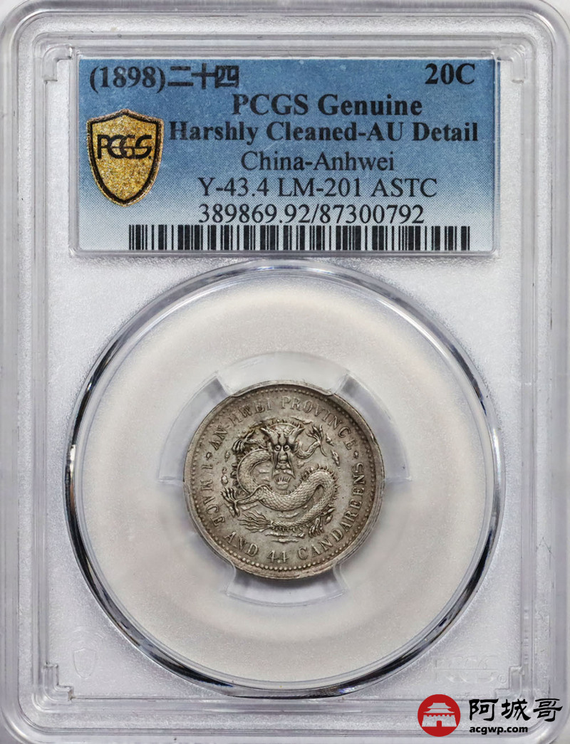 Lot:4 底光安徽二十四年贰角 PCGS AU