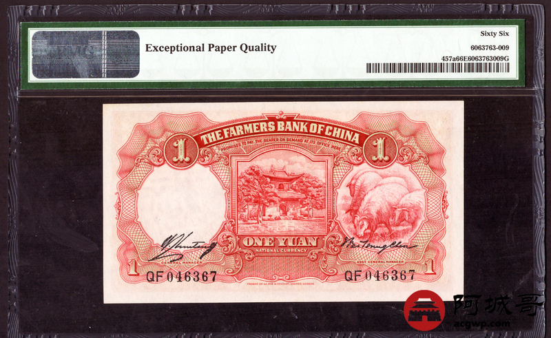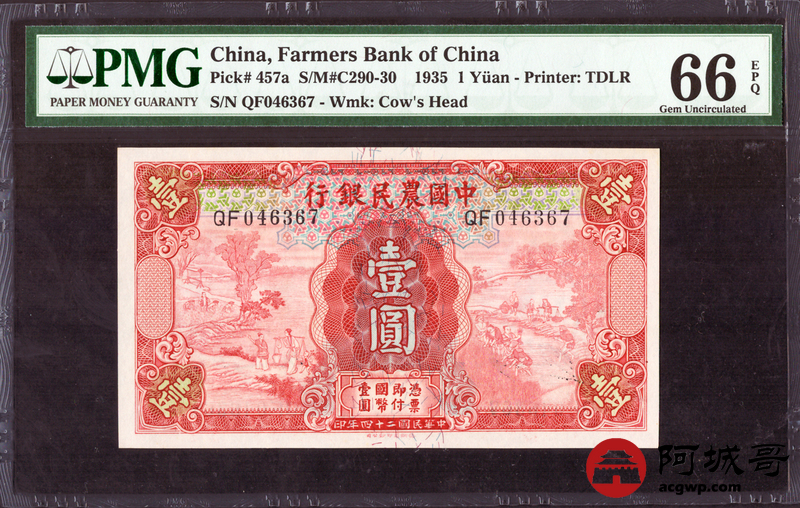 Lot:9 民国24年 红壹圆 中国农民银行 PMG 66EPQ 热门品种