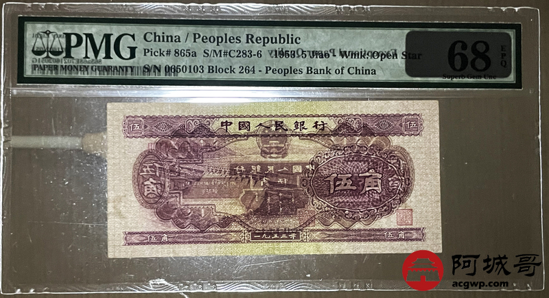 Lot:25 二版 1953年 伍角浅水坝 PMG 68EPQ 好号无47