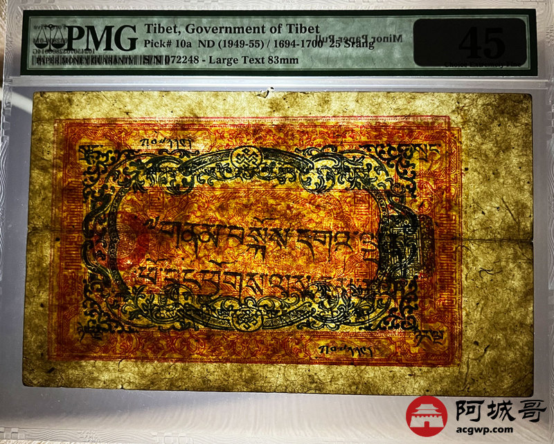Lot:22 民国时期 西藏纸币 25两 PMG 45 原汁原味