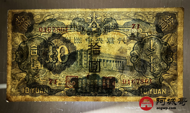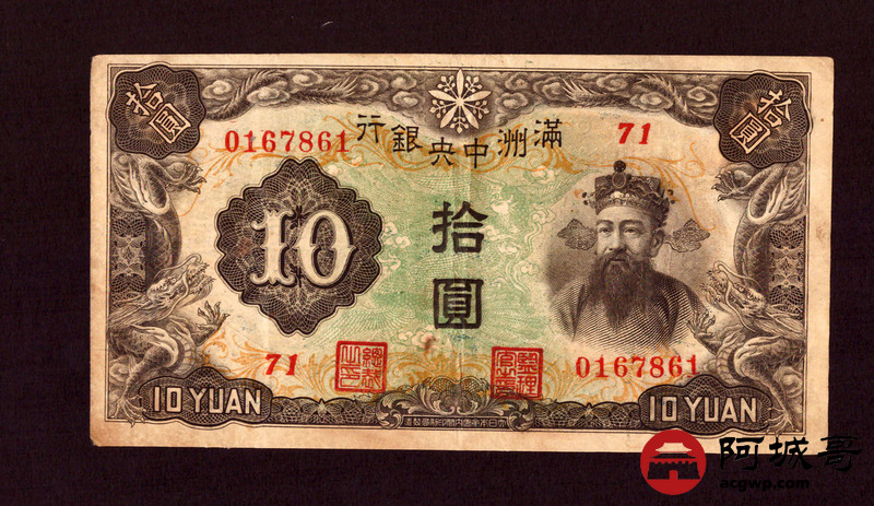 Lot:37 满洲中央银行 拾圆财神像 77成新