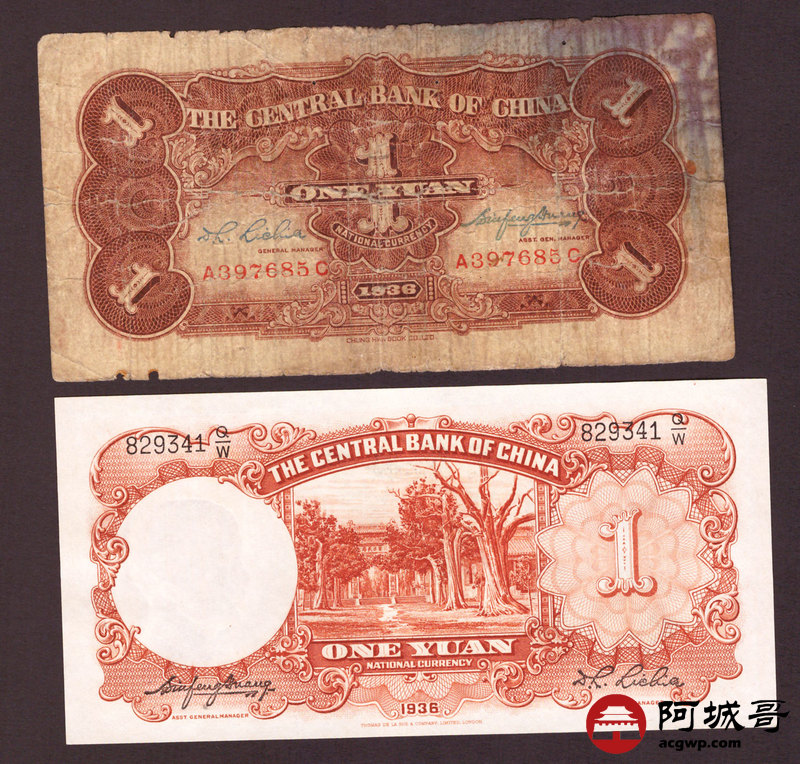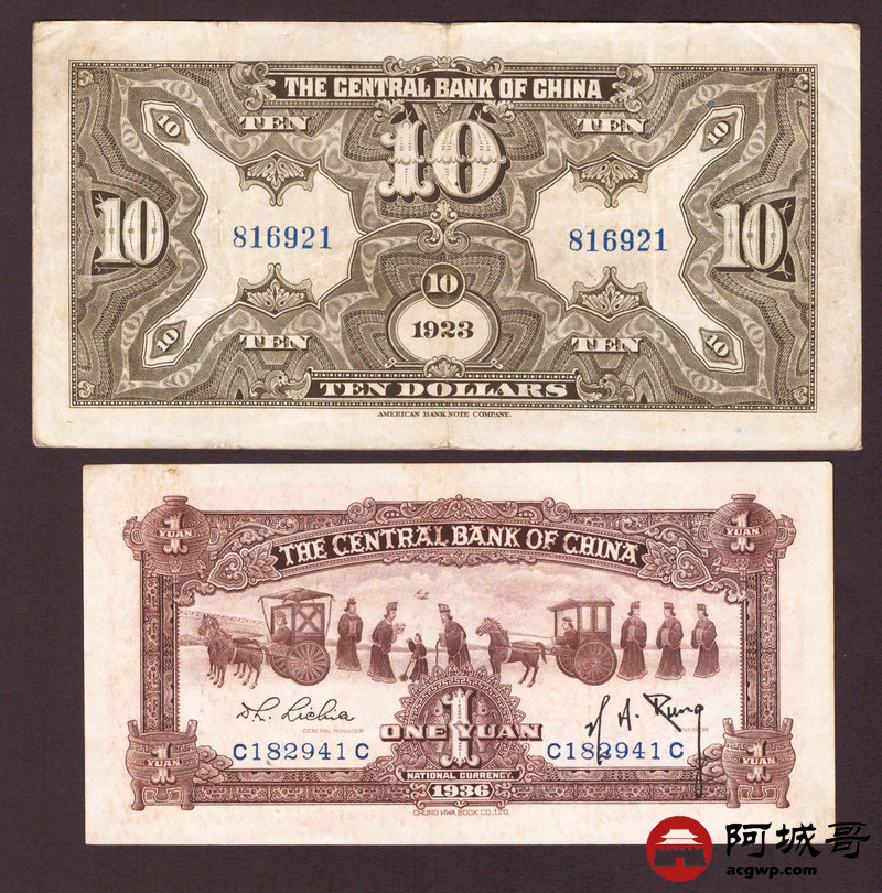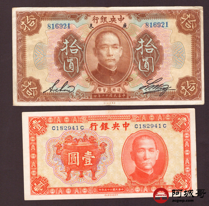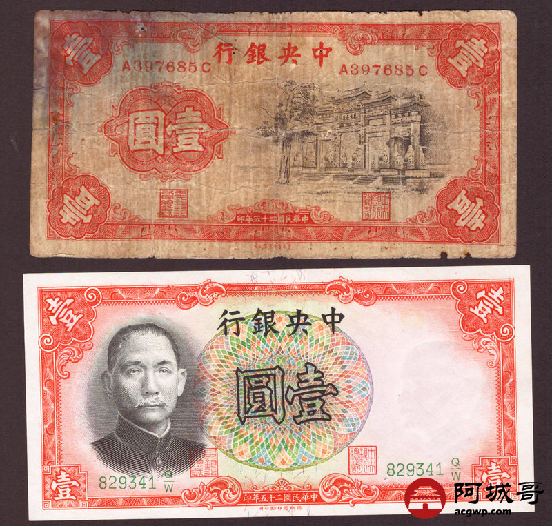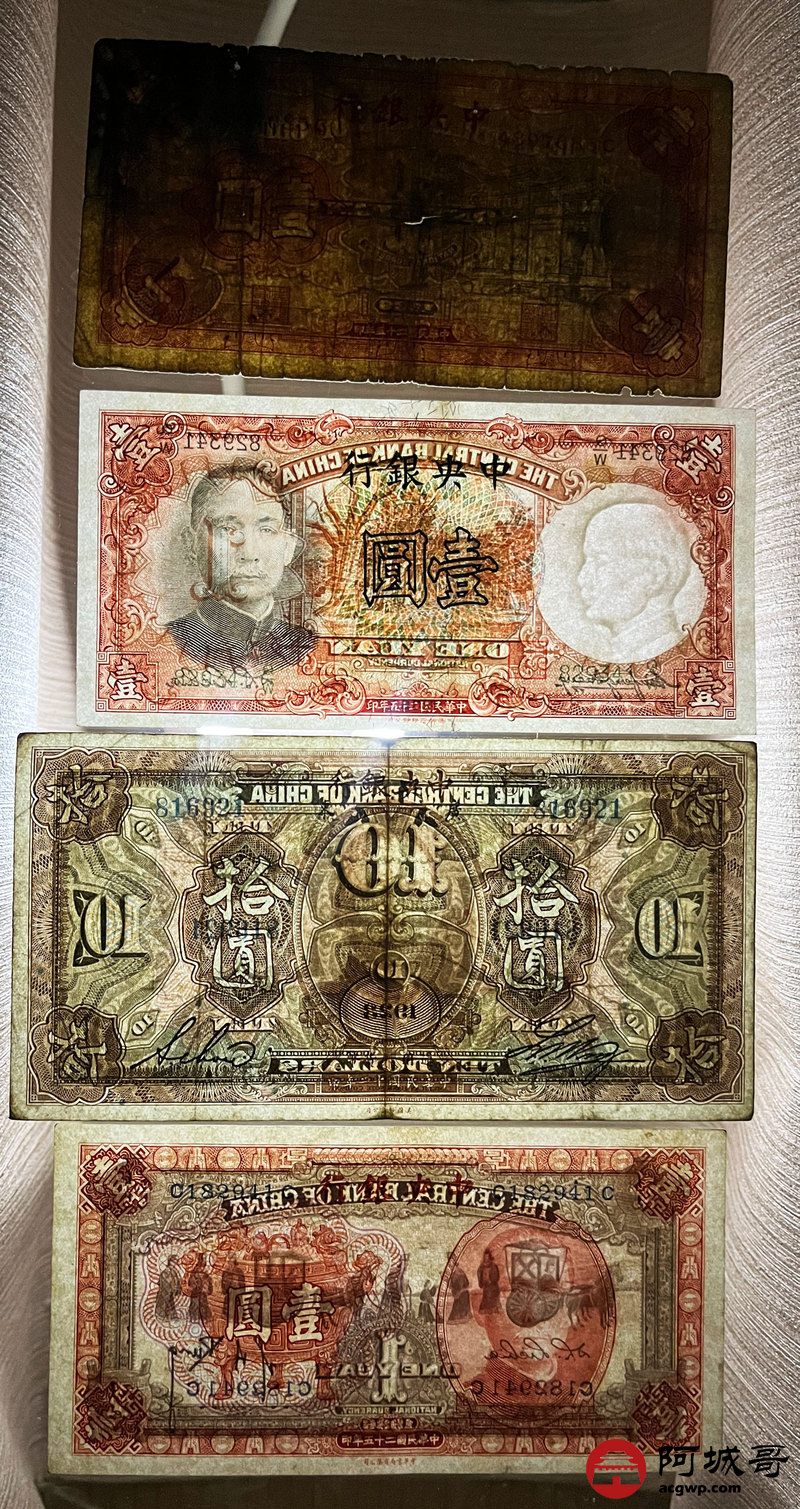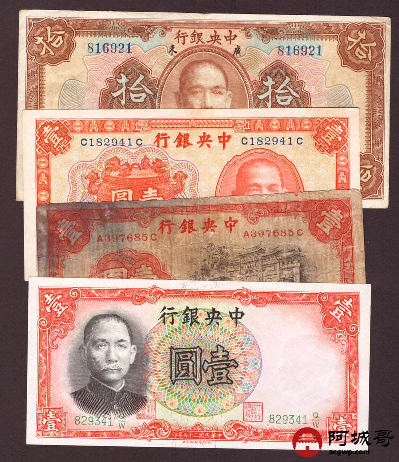Lot:55 民国时期 中央银行纸币 四张 从上至下85成新、8成新、6成新、95成新