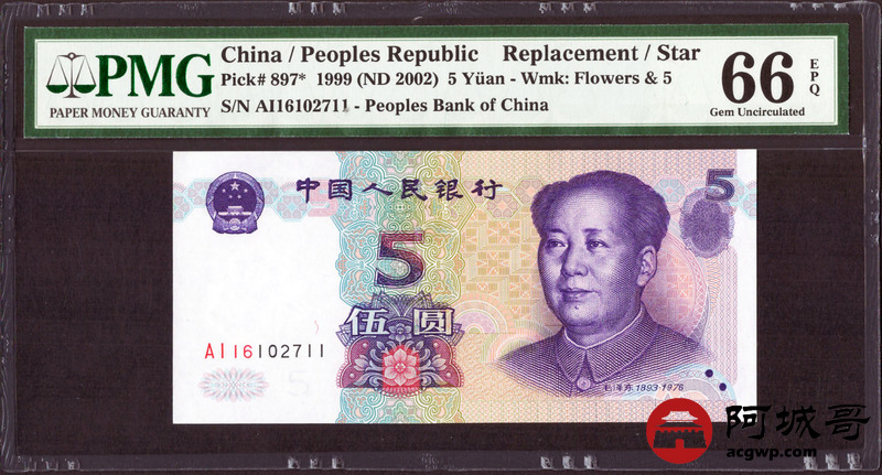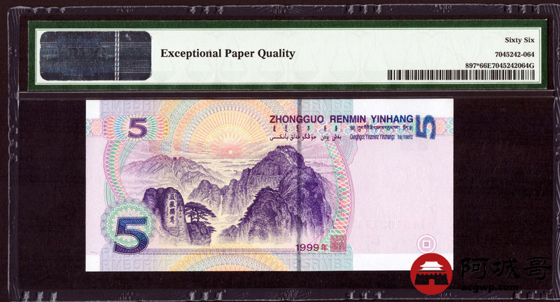 Lot:63 九九年 伍圆 PMG 66EPQ 好号无4 补号
