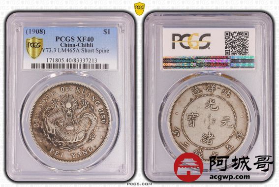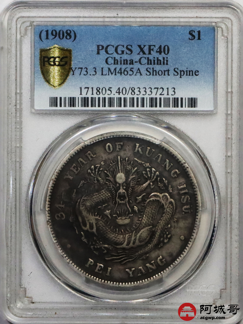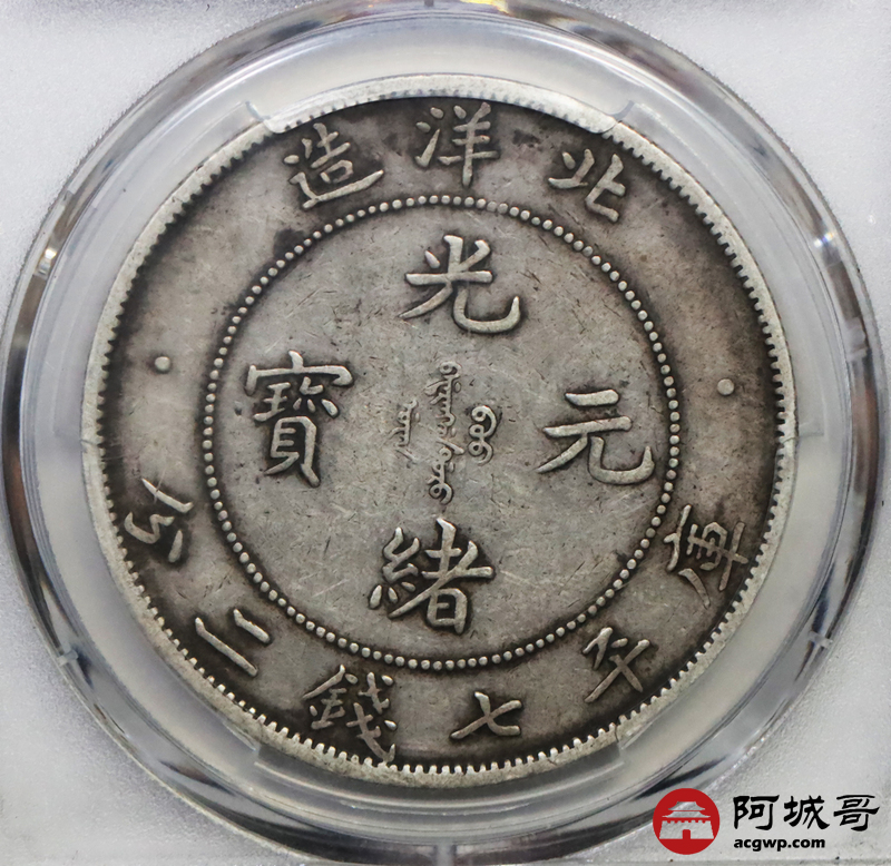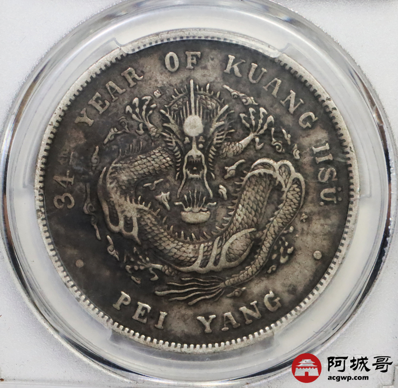 Lot:2 原味老包浆北洋34七钱二分短尾龙 PCGS XF40