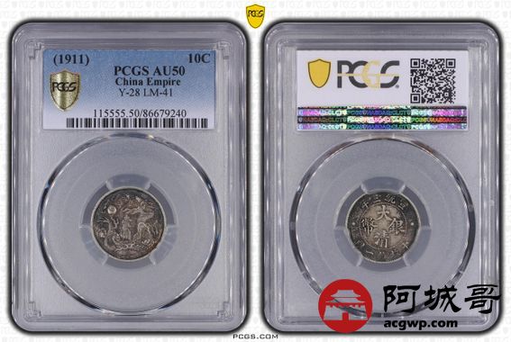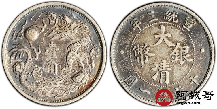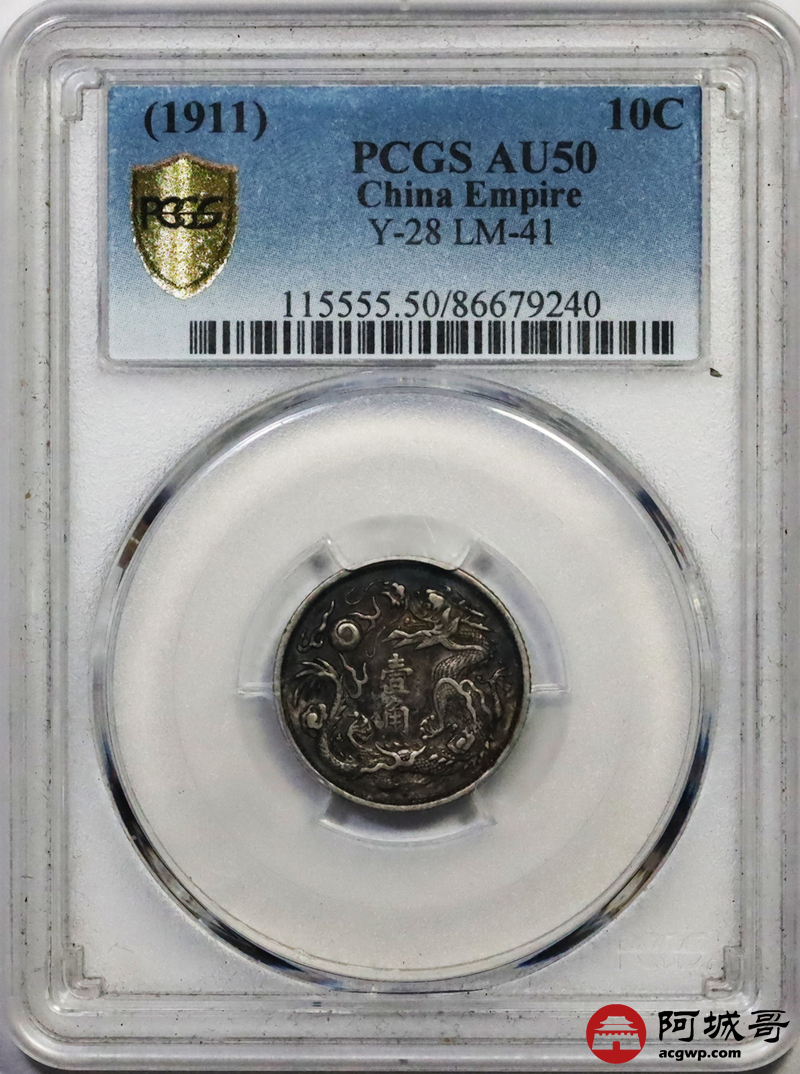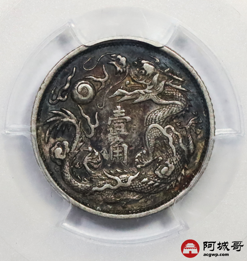 Lot:28 原味 五彩 底光 大清宣三 龙洋 一角 PCGS AU 50