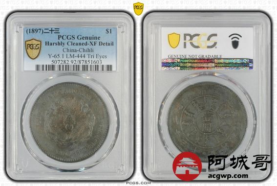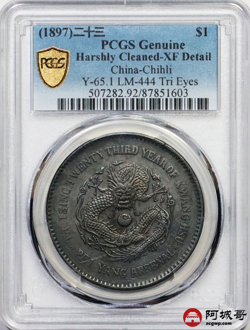 Lot:17 a黑美人 全龙鳞 北洋机器局 二十三年壹圆 PCGS XF