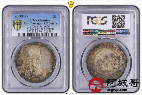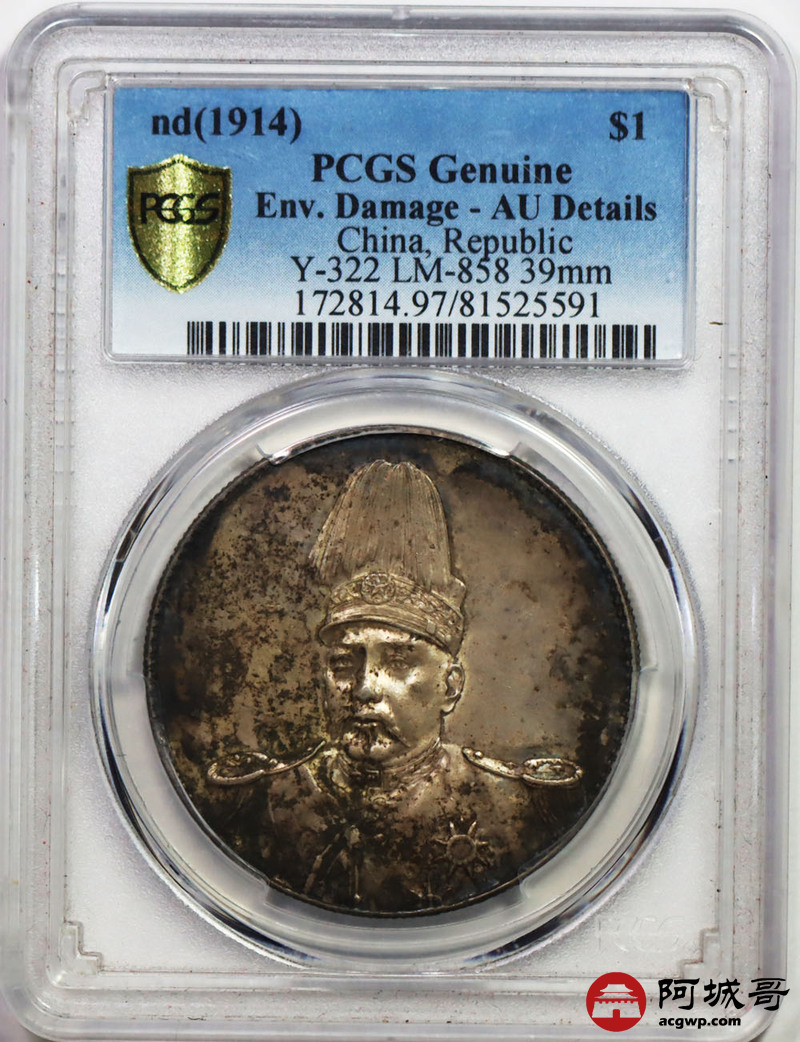 Lot:15 原味 包浆底光 袁像共和纪念币 PCGS AU