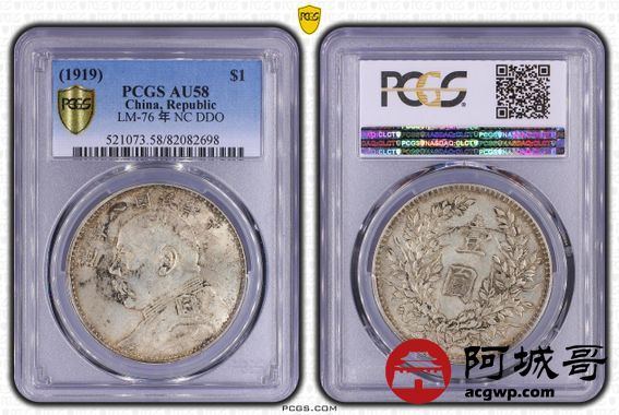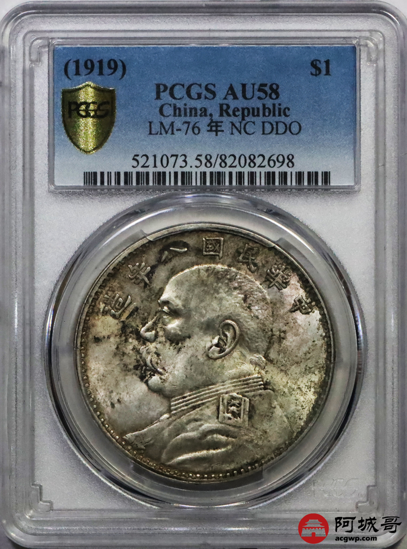 Lot:5 黄油转光 八年大头壹圆元宝点年 PCGS AU58