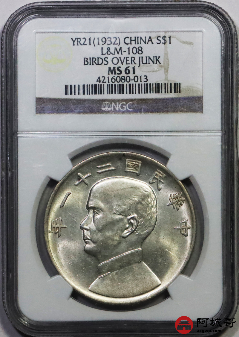 Lot:16 转光 孙像三鸟壹圆 NGC MS61