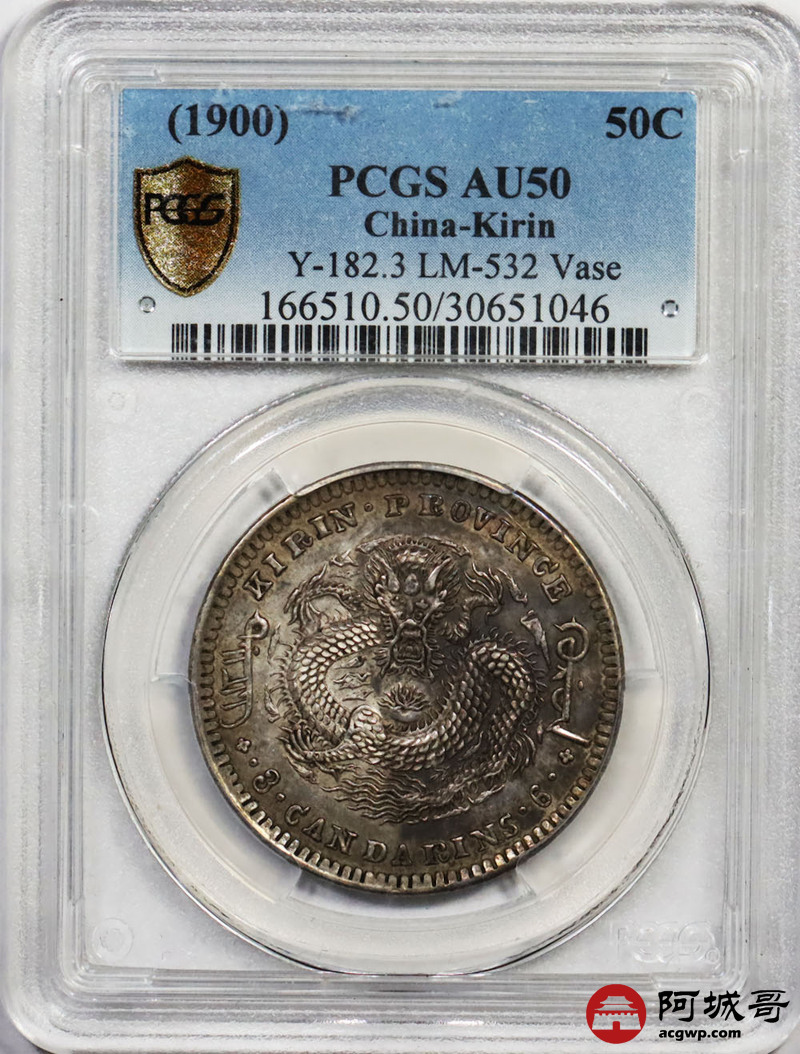 Lot:21 原光全龙鳞 五彩光 吉林庚子 龙洋半圆 PCGS AU 50