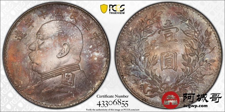 Lot:27 原光 粉彩光 民国十年大头 壹元 PCGS MS 65
