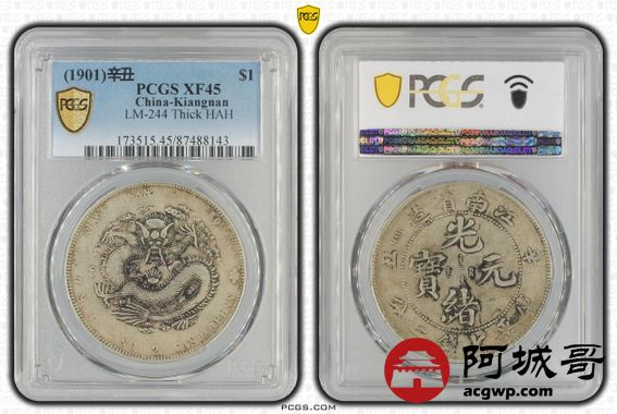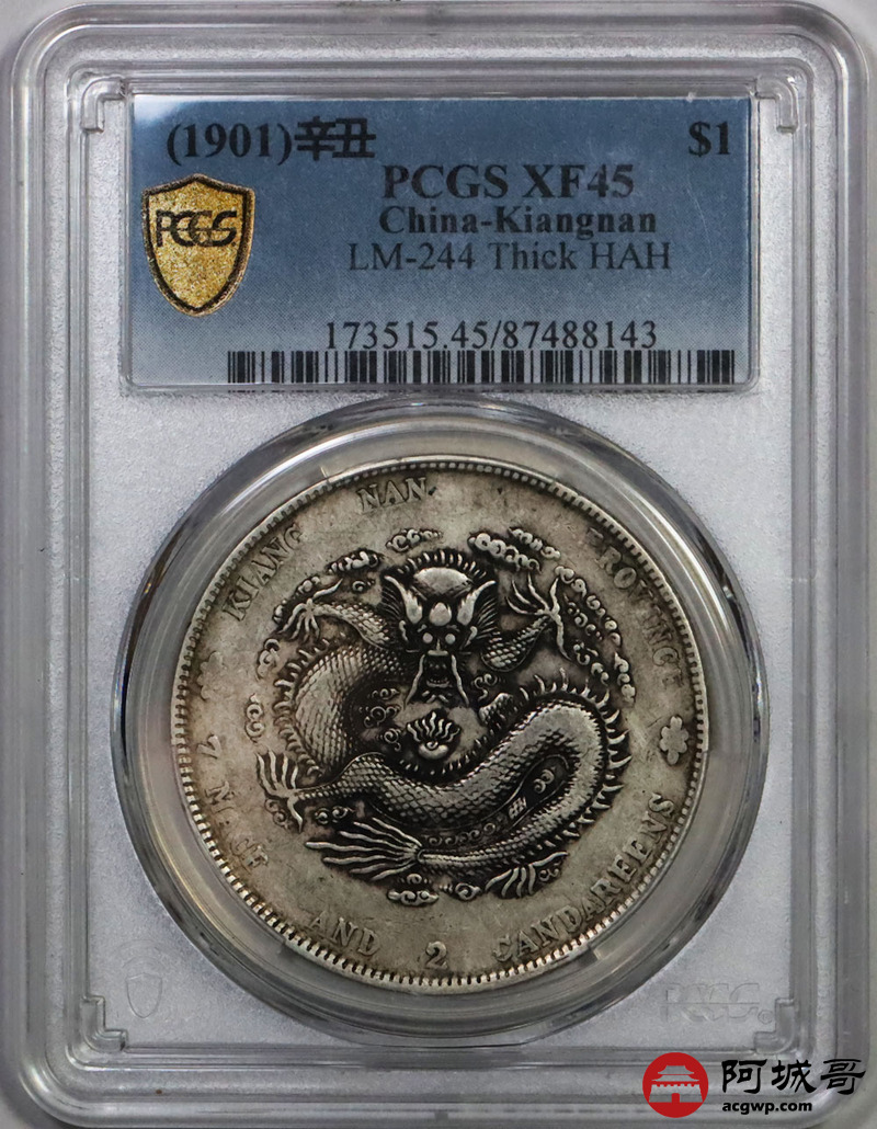 Lot:15 a原味 淡彩 江南 辛丑 龙洋 七钱二分 PCGS XF 45