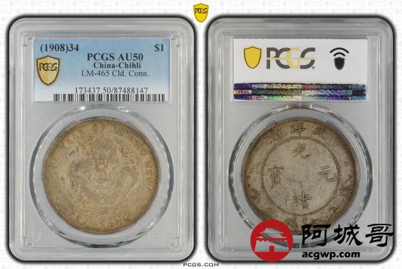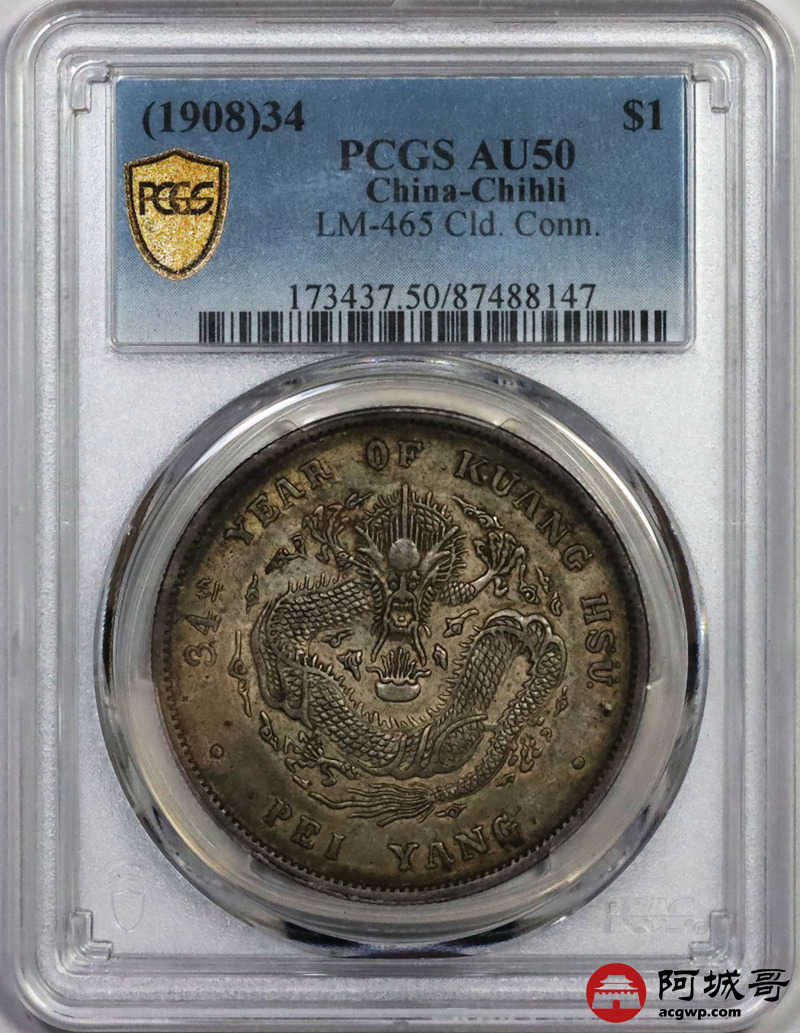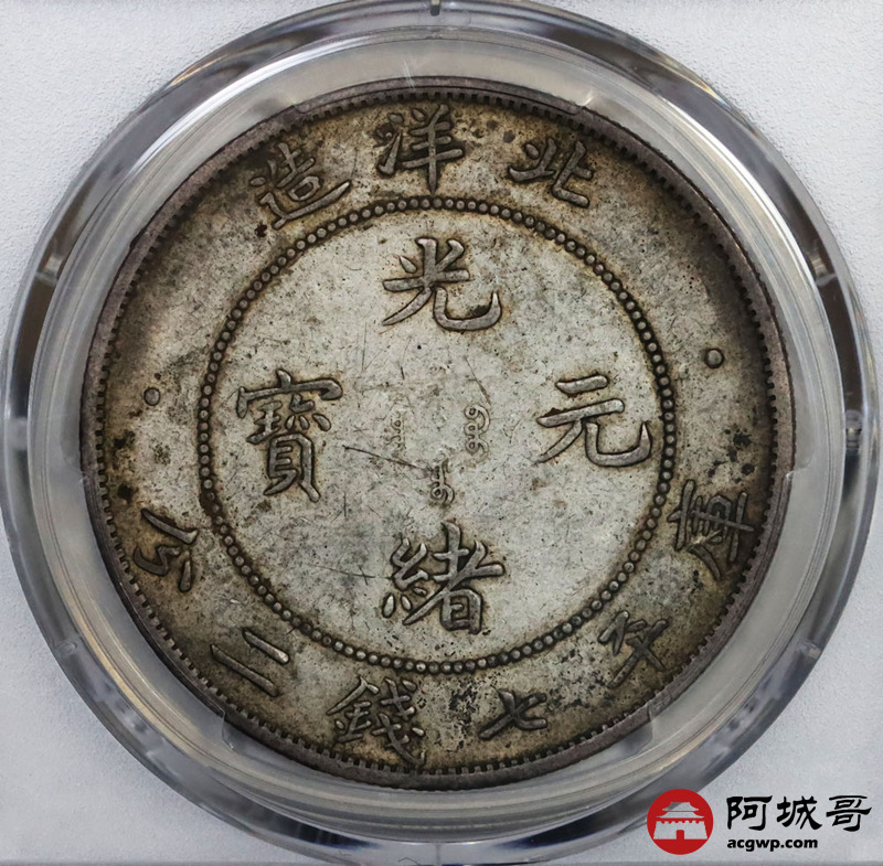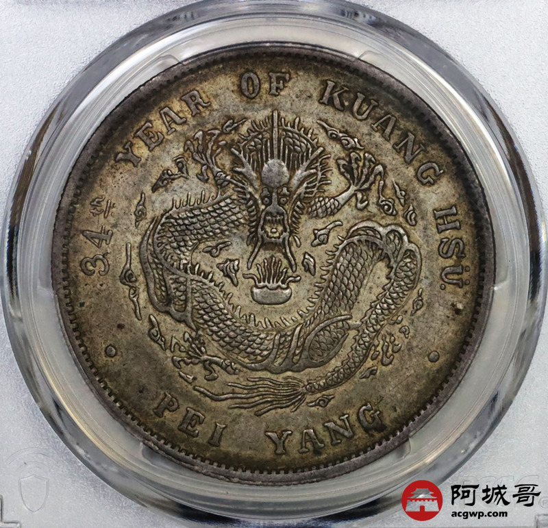 Lot:13 a原光 淡彩光 北洋34年龙洋 七钱二分 PCGS AU 50