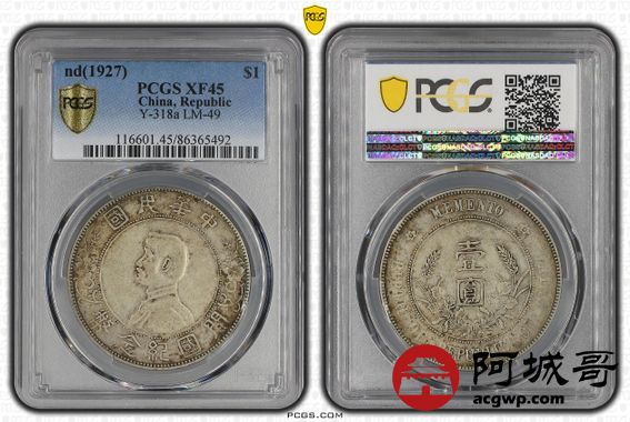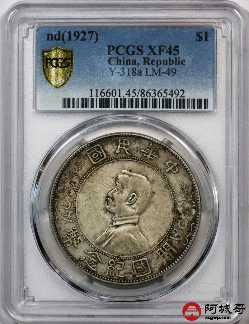 Lot:34 原味老包浆 孙像小头 左右三花 PCGS XF45