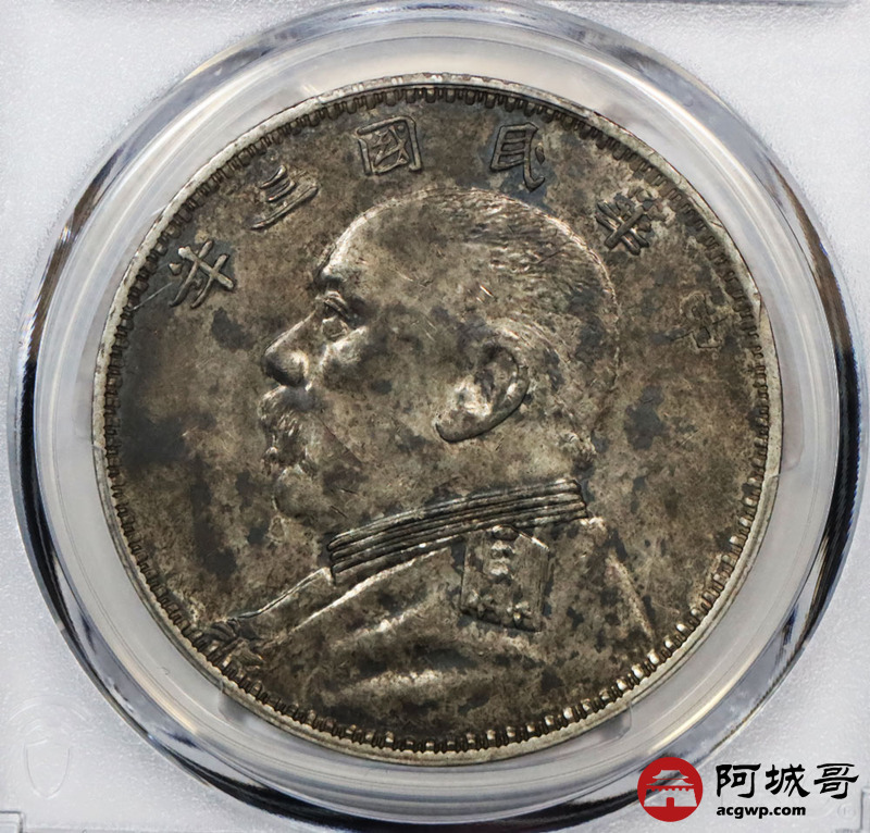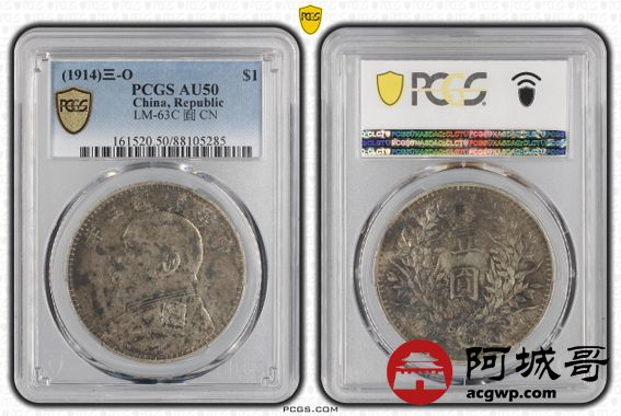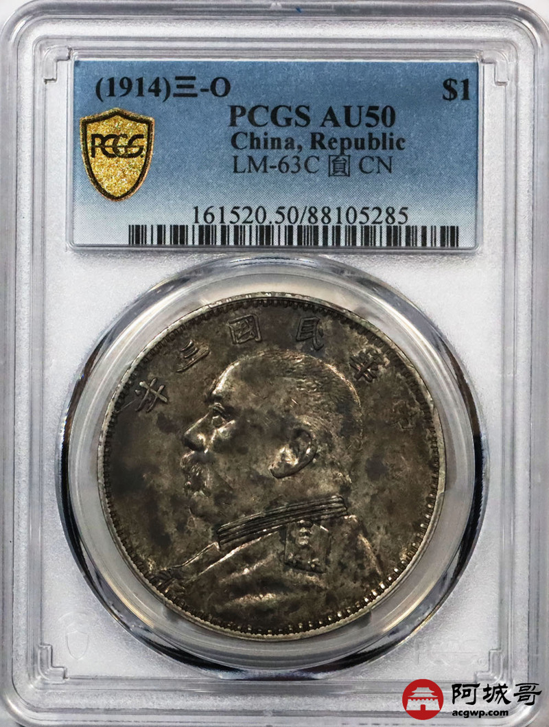 Lot:30 原味 五彩 包浆 民国三年大头o版壹元 PCGS AU 50