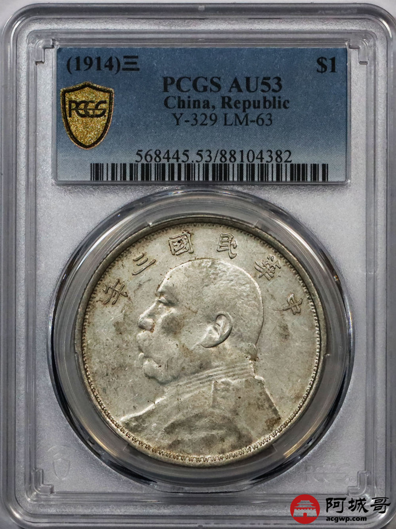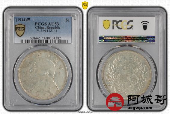 Lot:32 原味 淡彩底光 民国三年大头滇版 PCGS AU 53