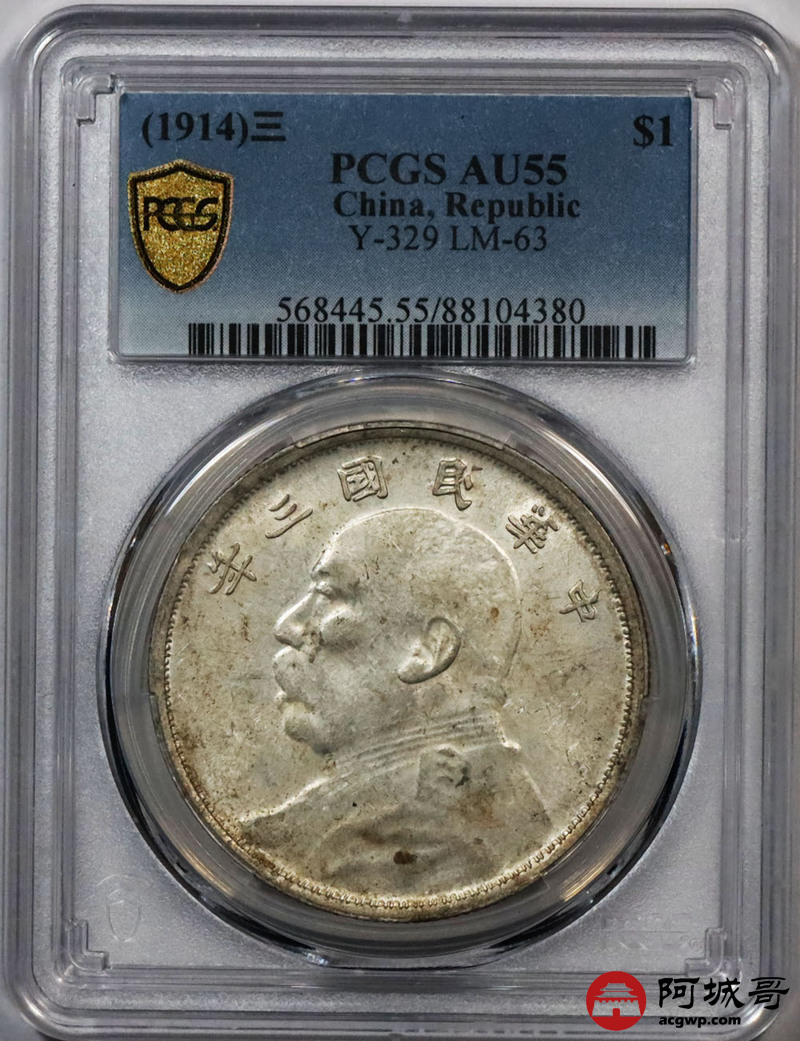 Lot:23 原味 淡彩底光 民国三年大头滇版 PCGS AU 55