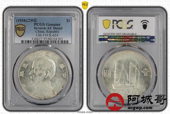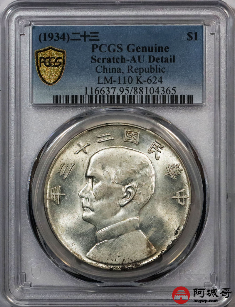 Lot:36 原光 民国23年船洋壹元 六绳 PCGS AU