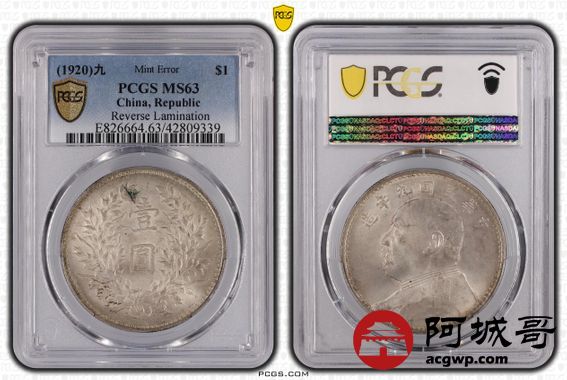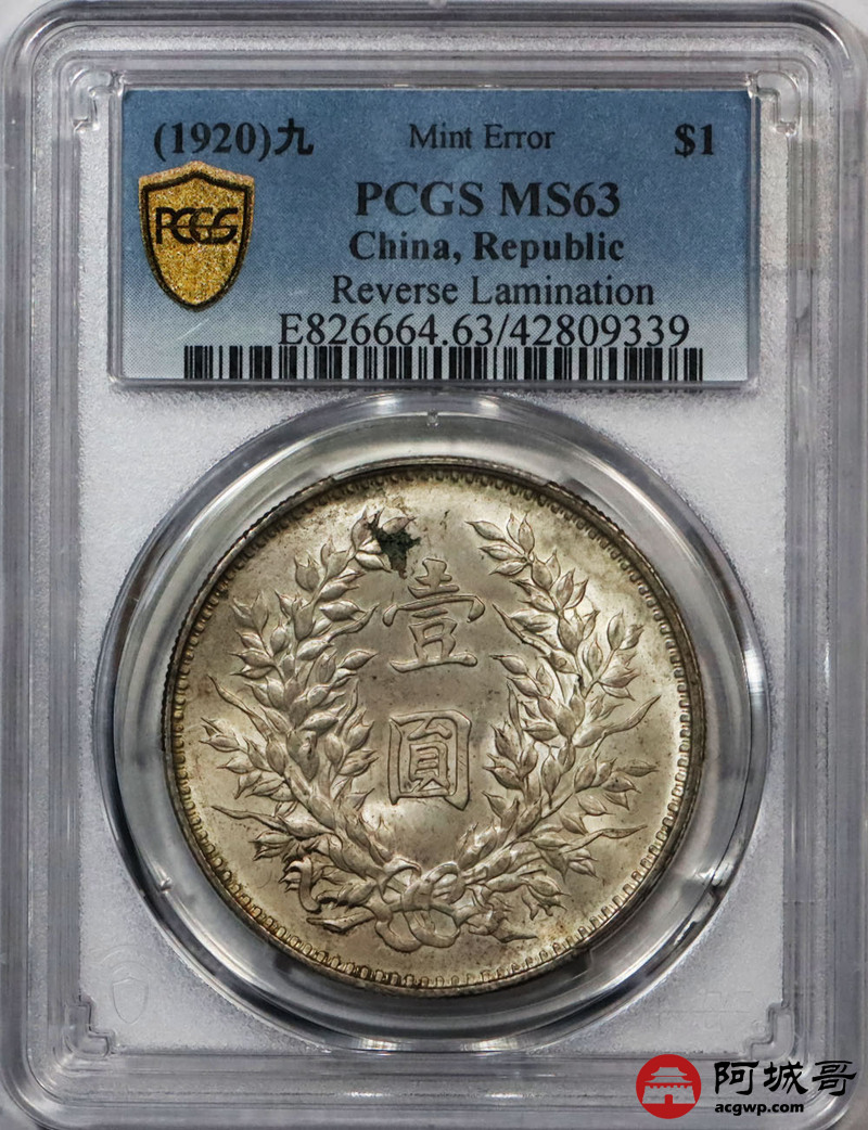 Lot:21 黄油转光 九年精发壹圆 PCGS MS63错版