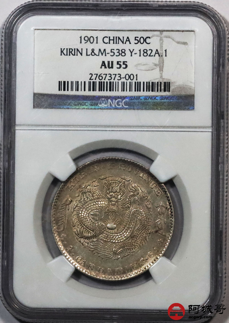 Lot:7 深打底光全龙鳞 吉林辛丑中心太极三钱六分 NGC AU55
