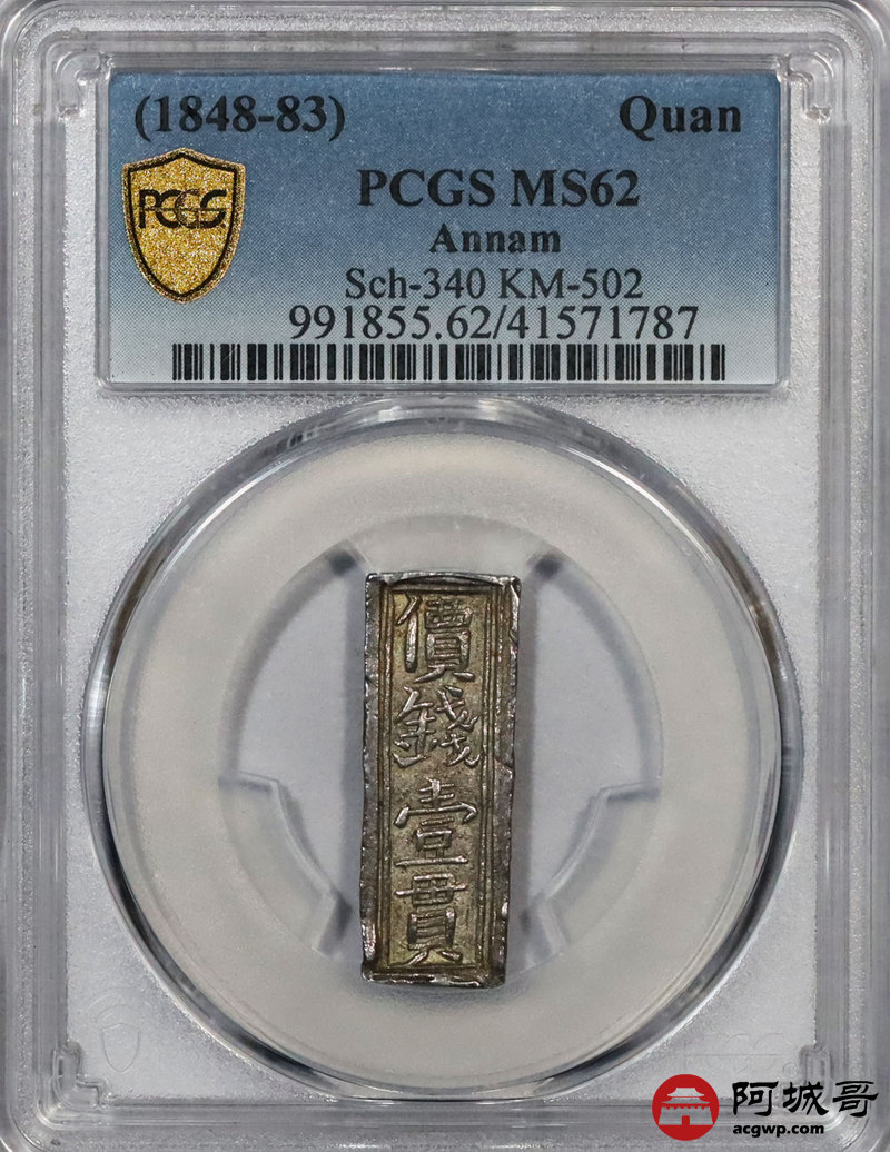 Lot:7 嗣德年造 價钱一贯 PCGS MS62