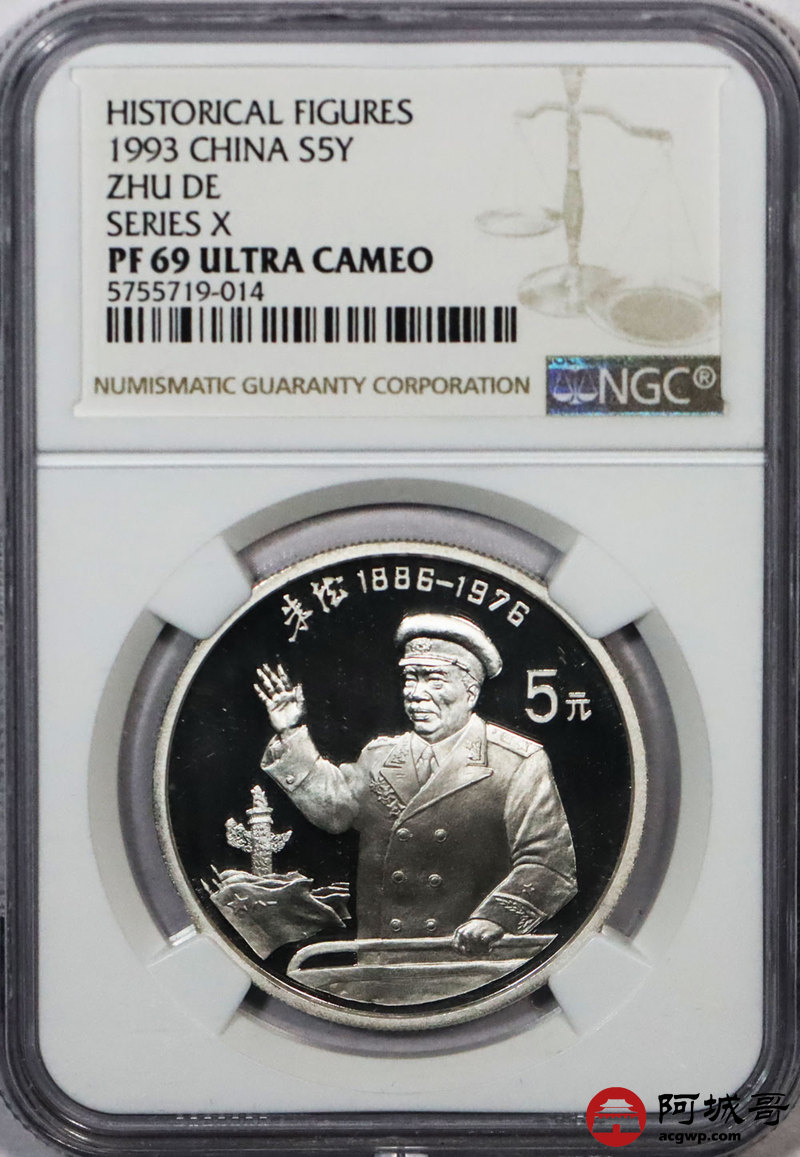 Lot:39 1993年朱德5元纪念币NGCPF69UC