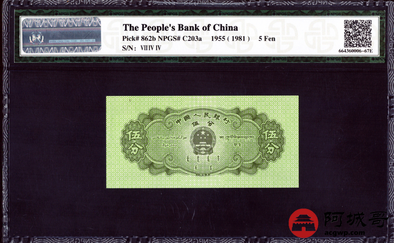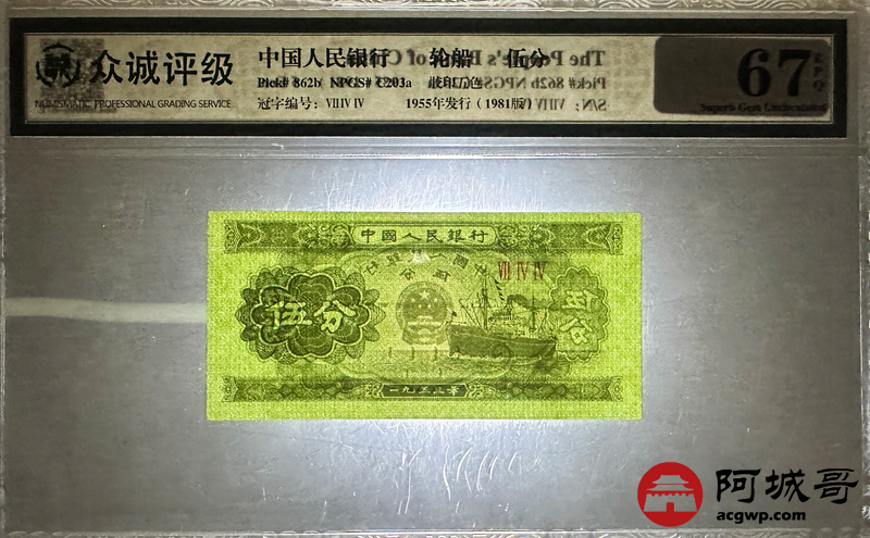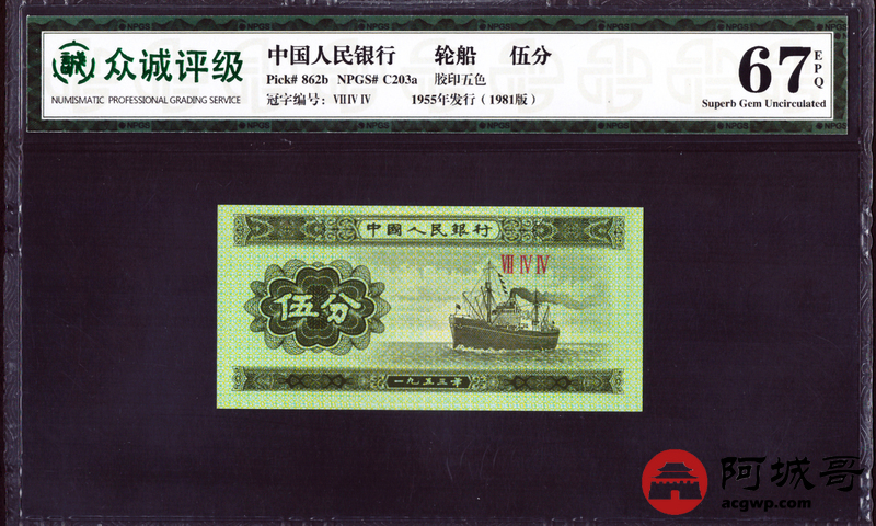 Lot:37 1953年 短号伍分 轮船 众诚评级 67EPQ