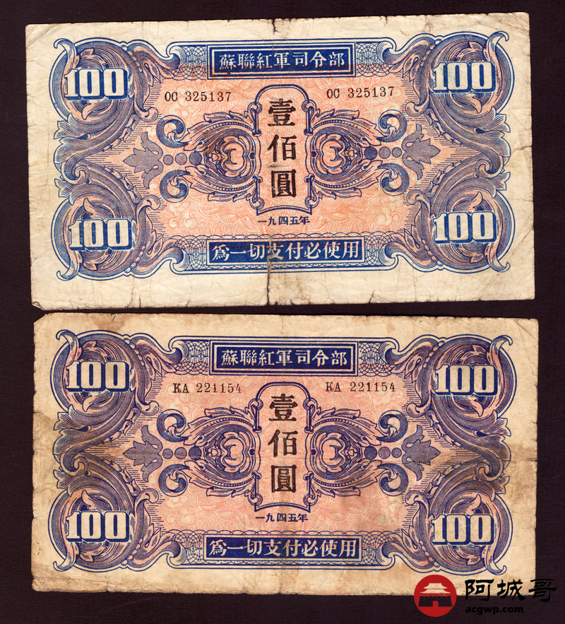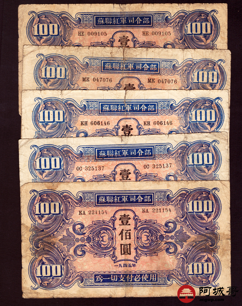Lot:20 1945年 蘇联红军司令部 壹佰圆 5张一组 67至68成新