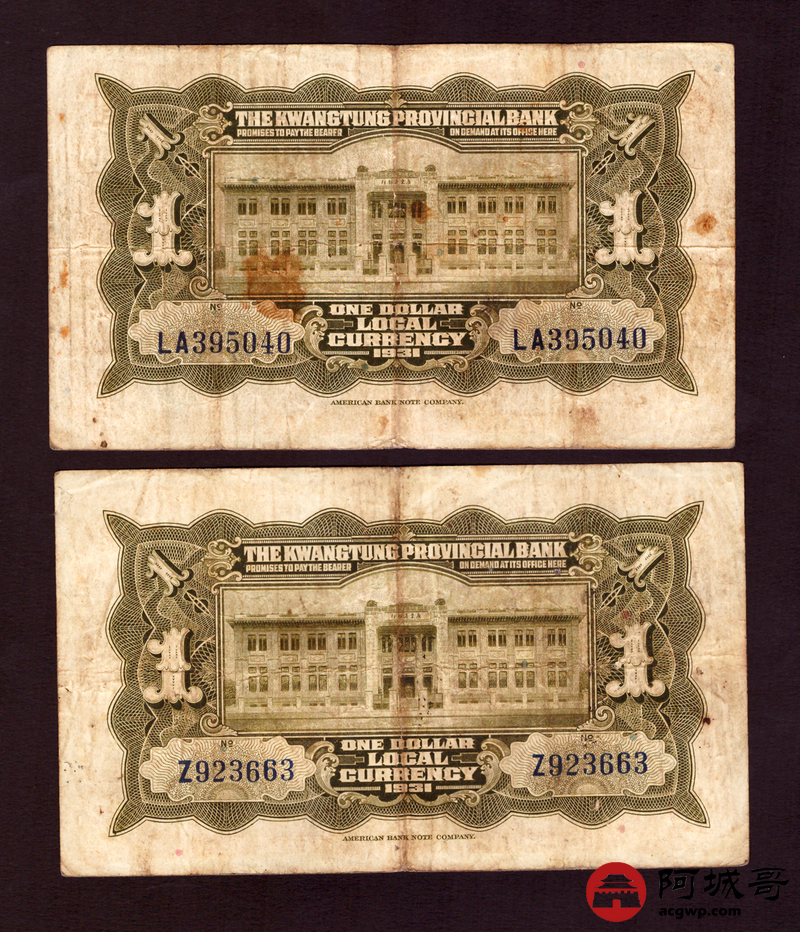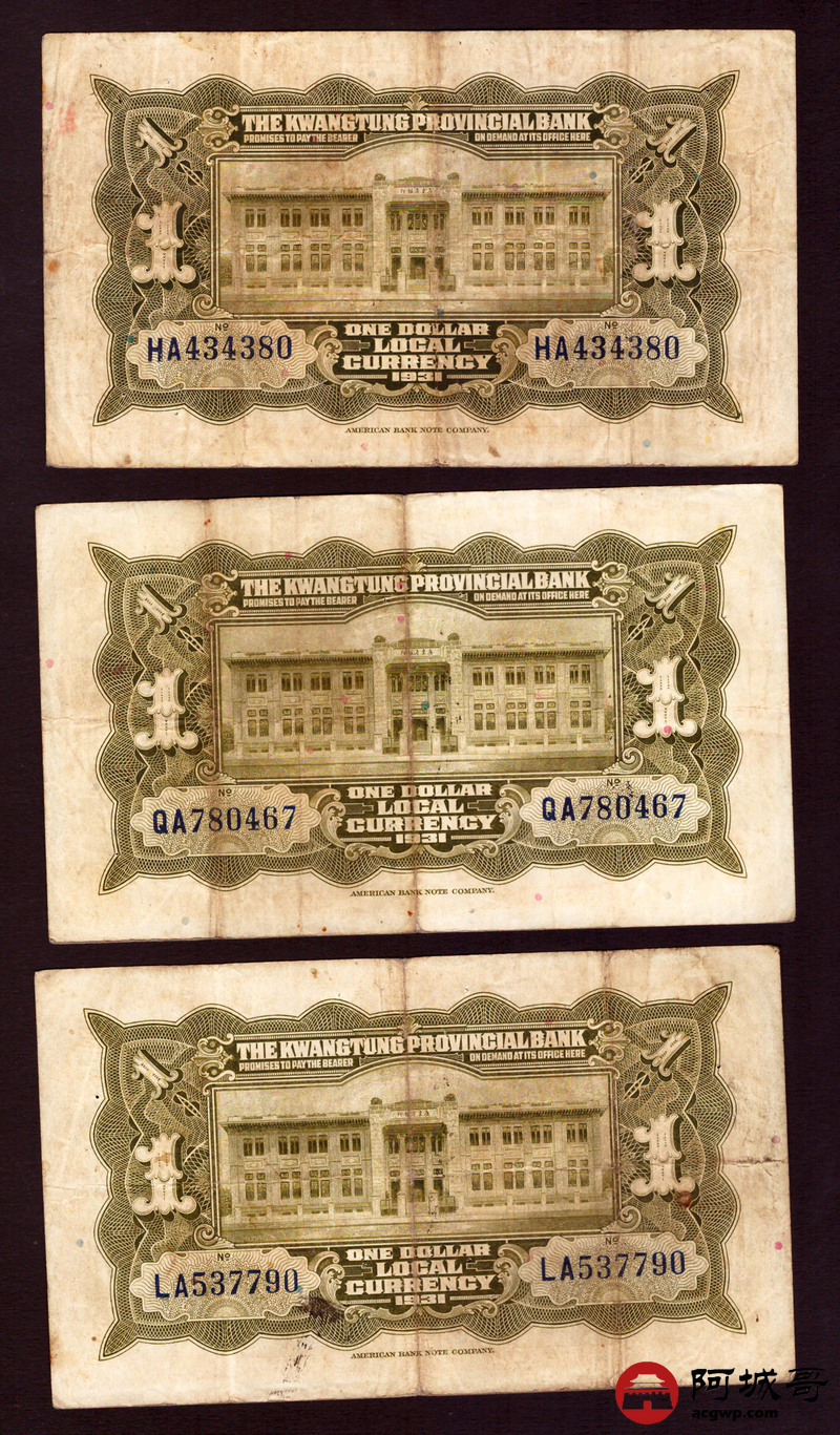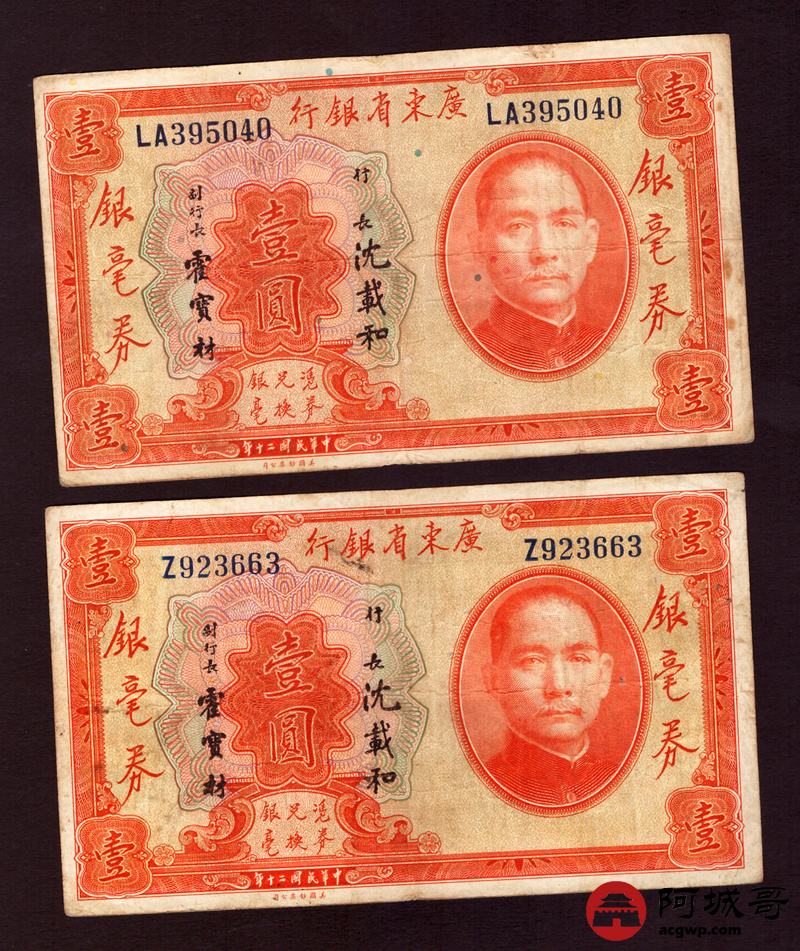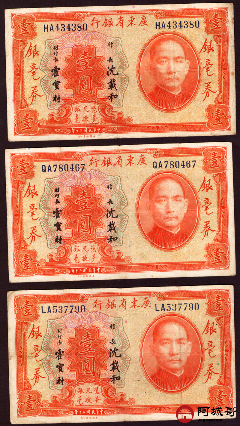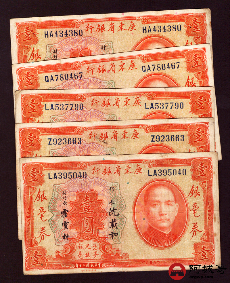 Lot:42 民国20年 广东省银行 壹圆 5张一组 69成新