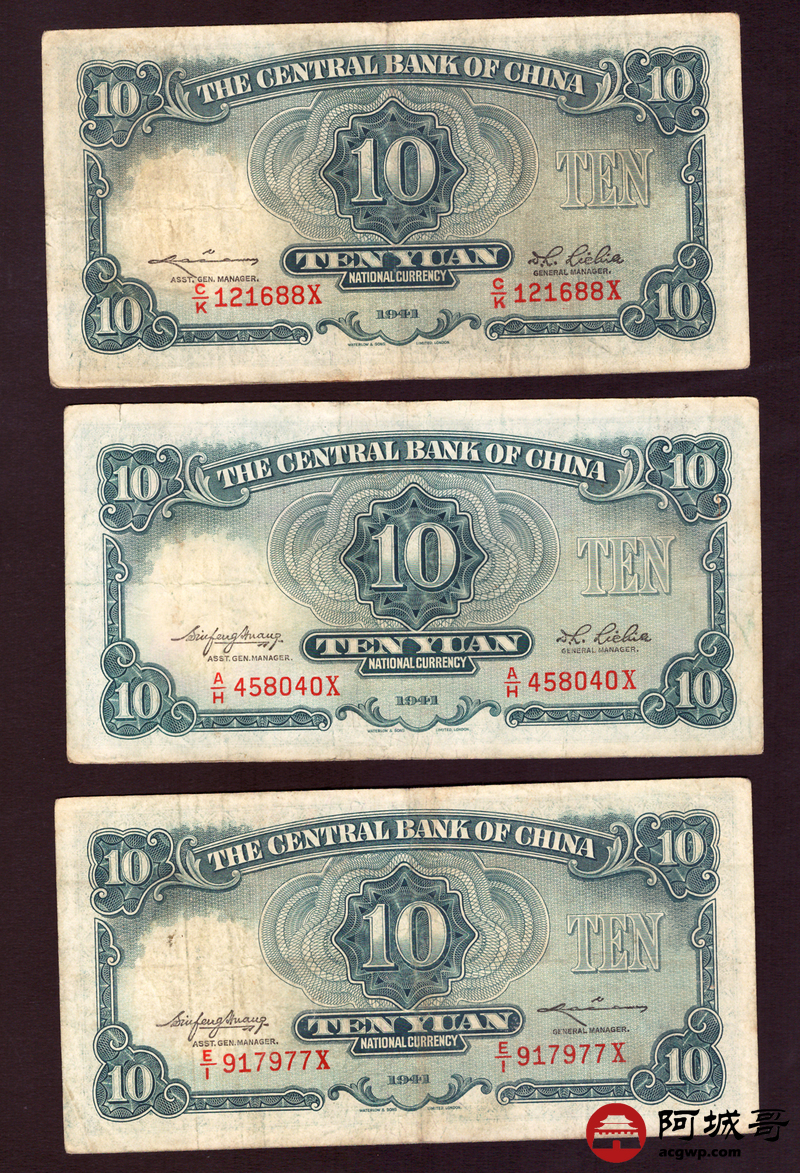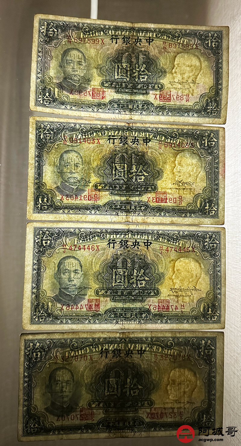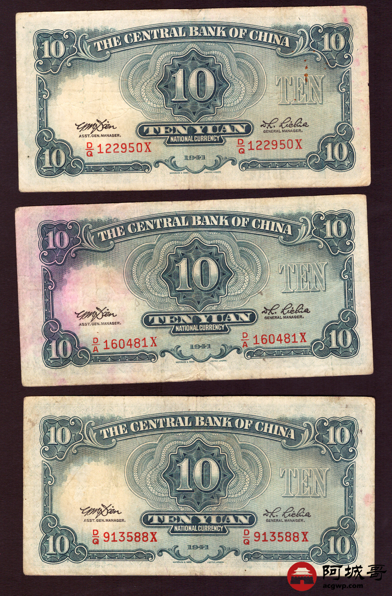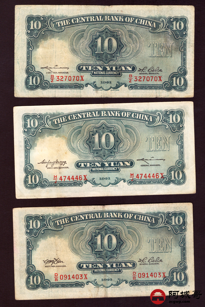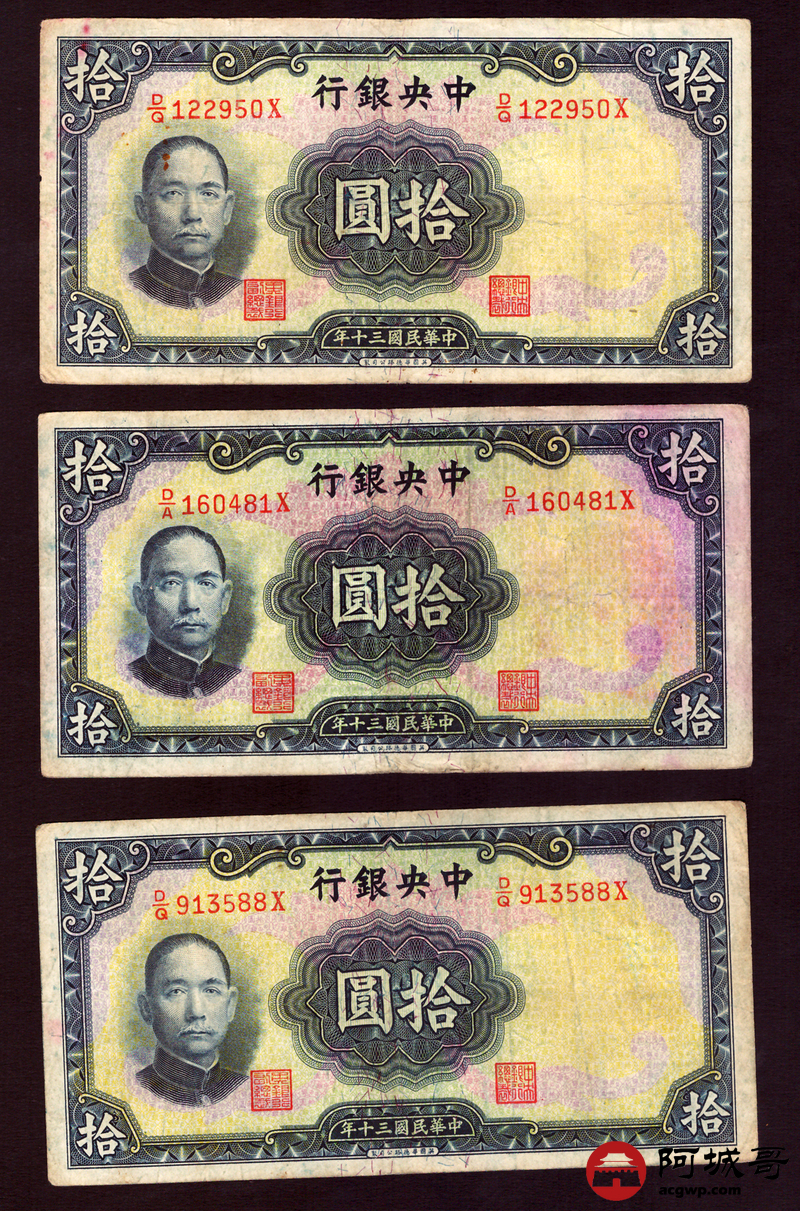 Lot:2 民国三十年 中央银行 拾圆 13张一组 72成新