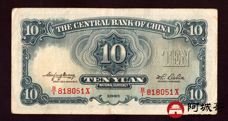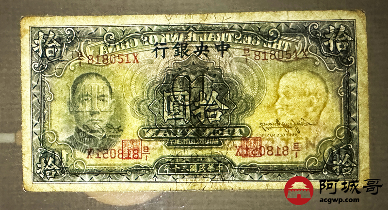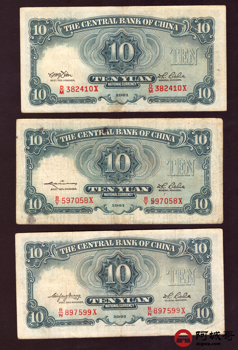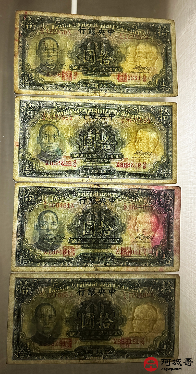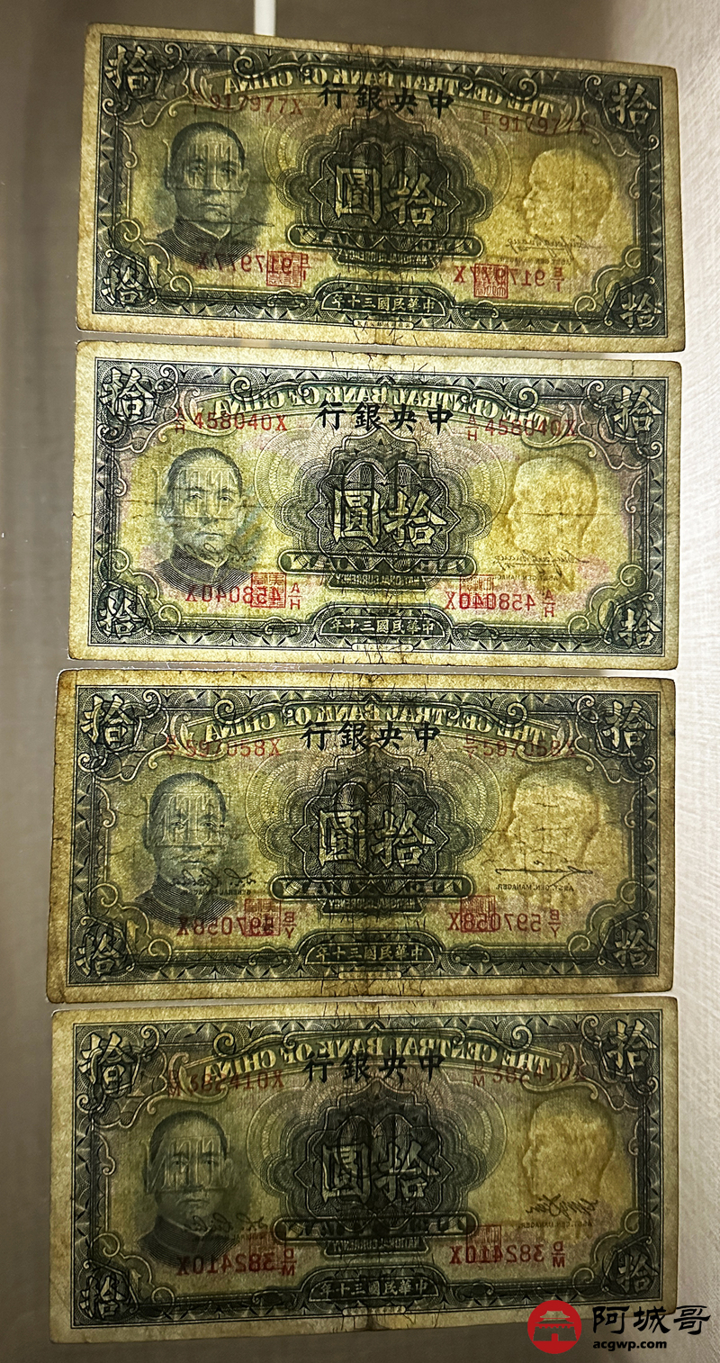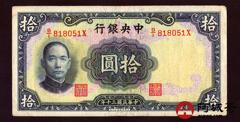 Lot:2 民国三十年 中央银行 拾圆 13张一组 72成新
