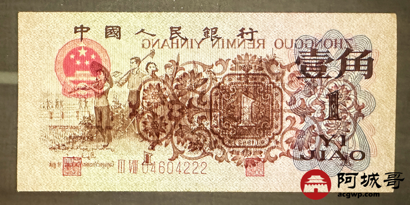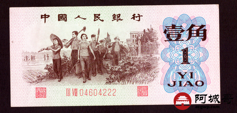 Lot:34 三版 1962年 壹角 尾号豹子号 9成新