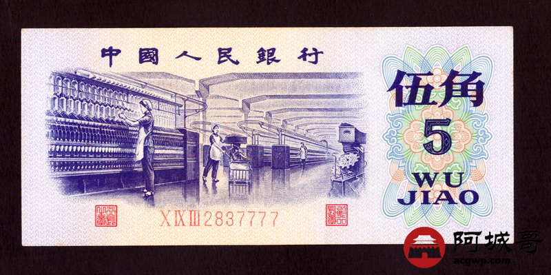 Lot:7 三版 1972年 伍角 纺织 尾号狮子号 88成新