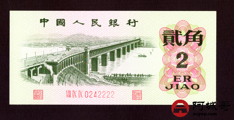 Lot:23 三版 1962年 贰角 长江大桥 尾号狮子号 98至全新