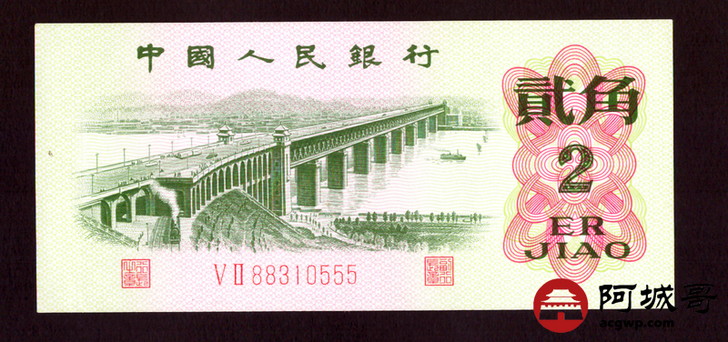 Lot:29 三版 1962年 贰角 长江大桥 好号无47尾号豹子号 9至92成新