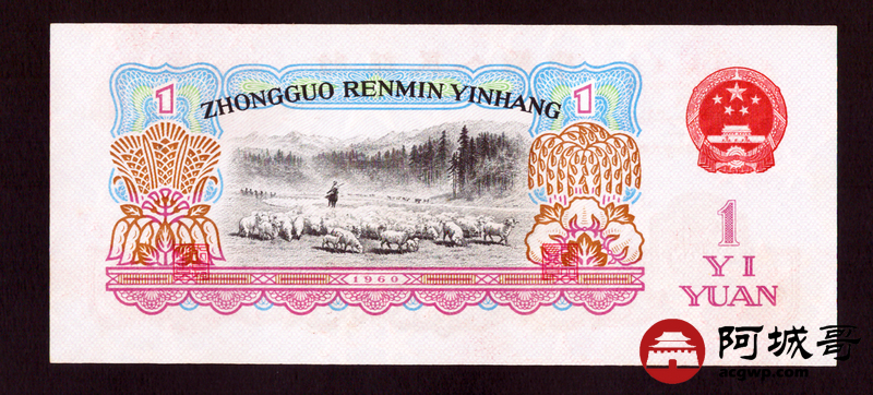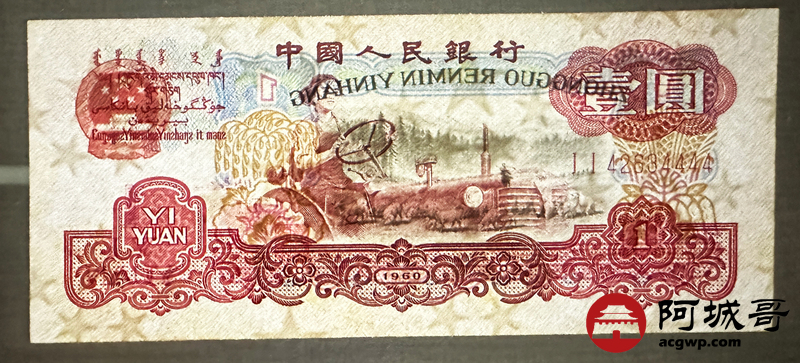 Lot:30 三版 1960年 壹圆 拖拉机手星水印 93至全新