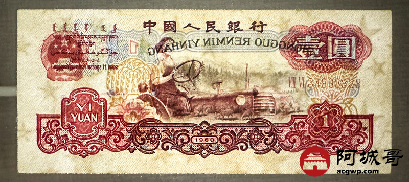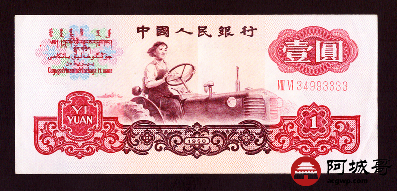 Lot:47 三版 1960年 壹圆 拖拉机手星水印 尾号狮子号 85至88成新