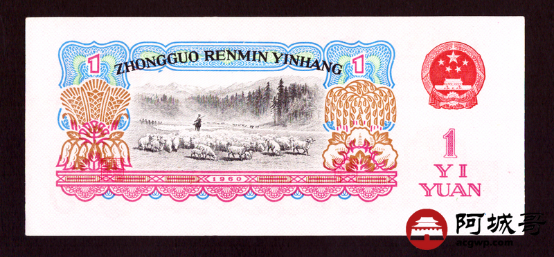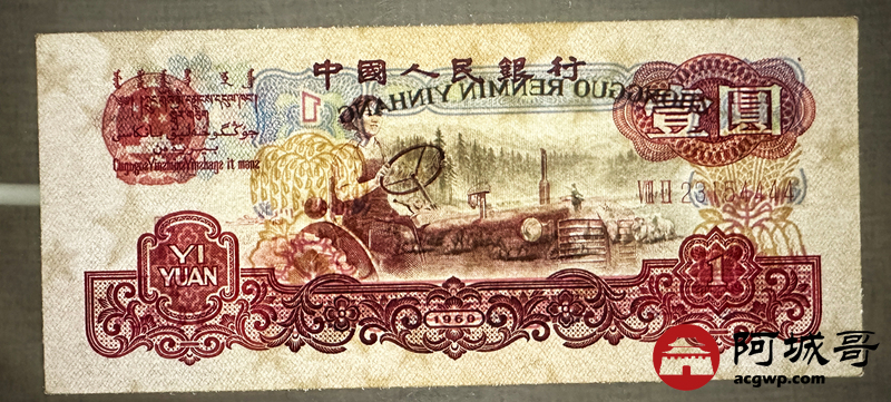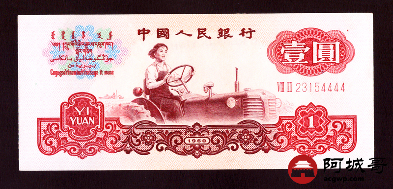 Lot:49 三版 1960年 壹圆 拖拉机手星水印 尾号狮子号 9成新