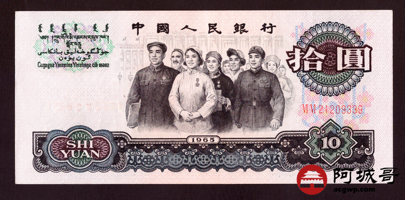 Lot:55 三版 1965年 拾圆大团结 好号无47 88成新