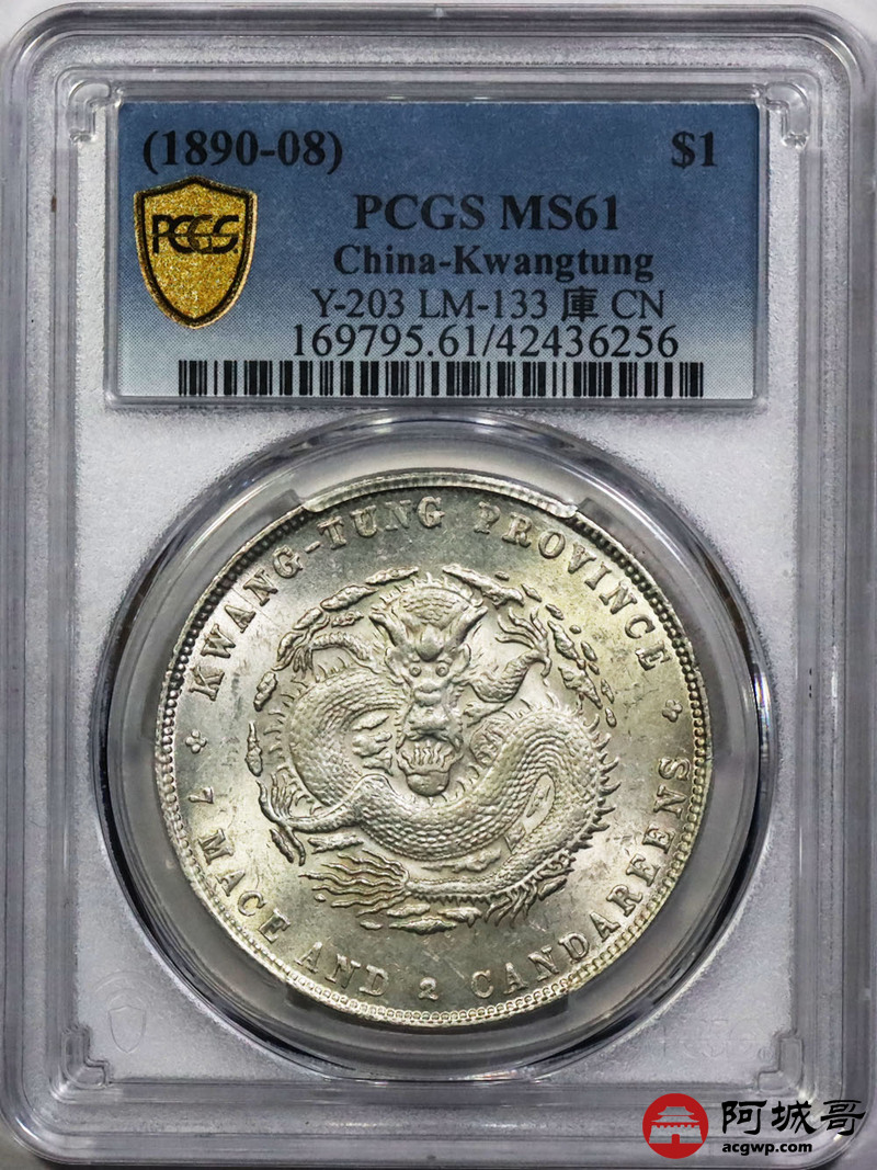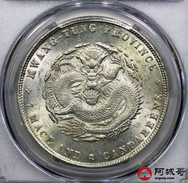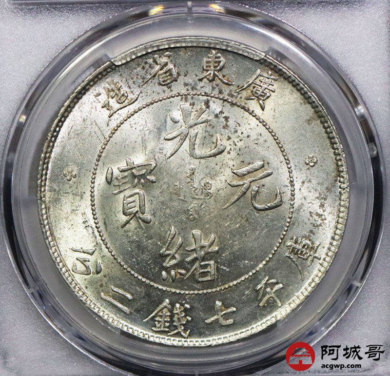 Lot:1308 1890-08广东省造光绪元宝库平七钱二分银币一枚,原色光 PCGS MS61评级编号:42436256