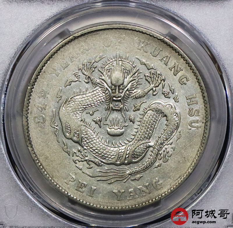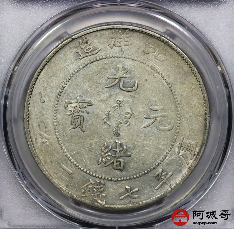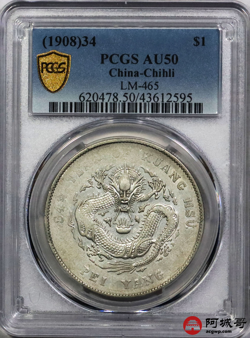 Lot:1637 1908光绪三十四年北洋造光绪元宝库平七钱二分银币一枚 PCGS AU50评级编号:43612595