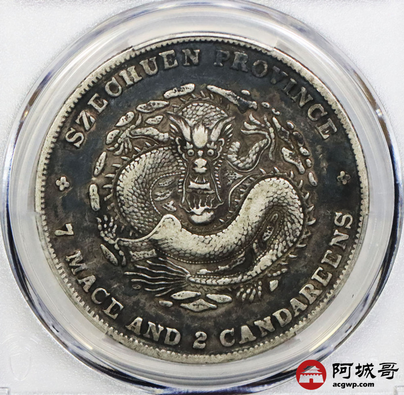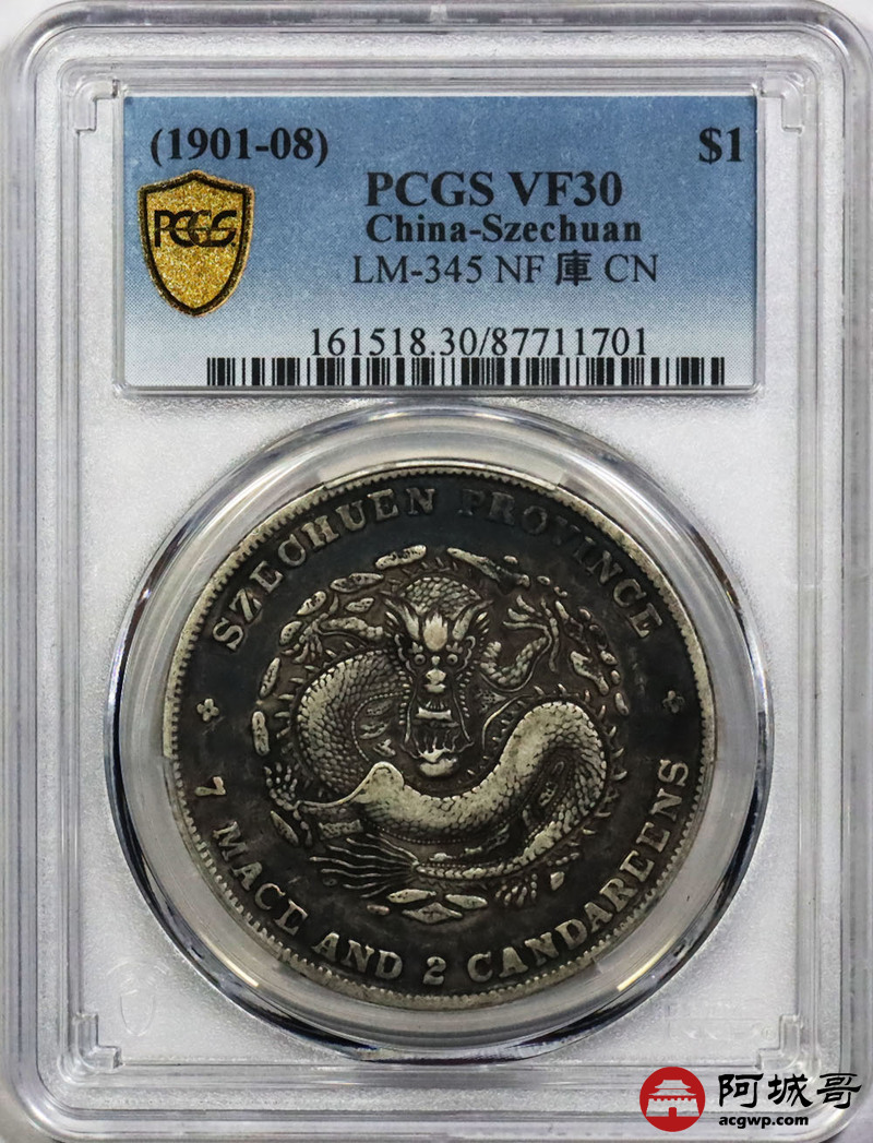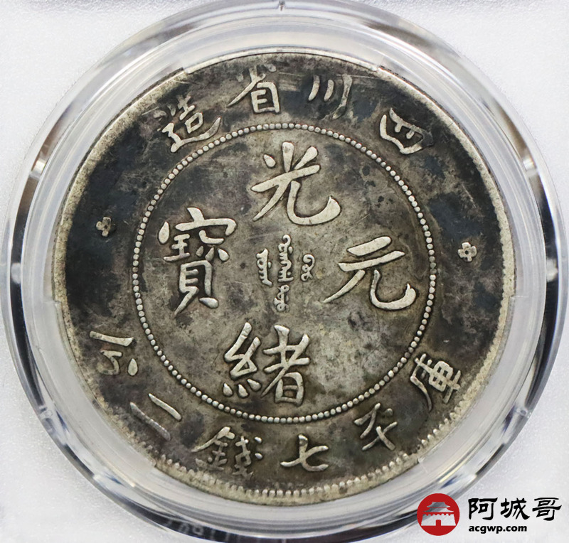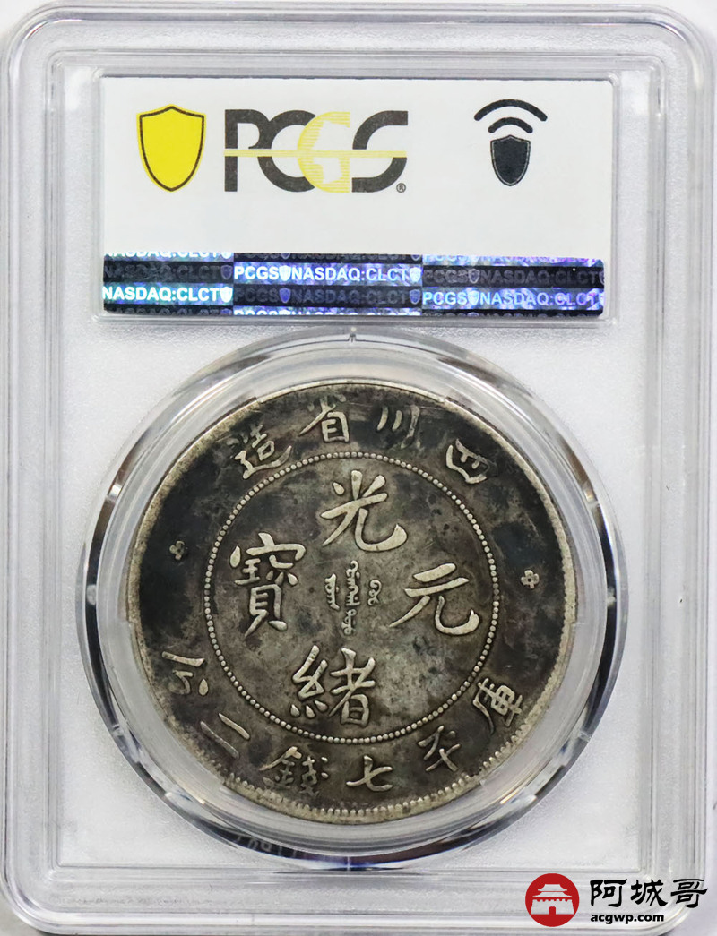 Lot:1426 1901-08年四川省造光绪元宝库平七钱二分银币一枚,底板厚重黑彩 PCGS VF30评级编号:87711701