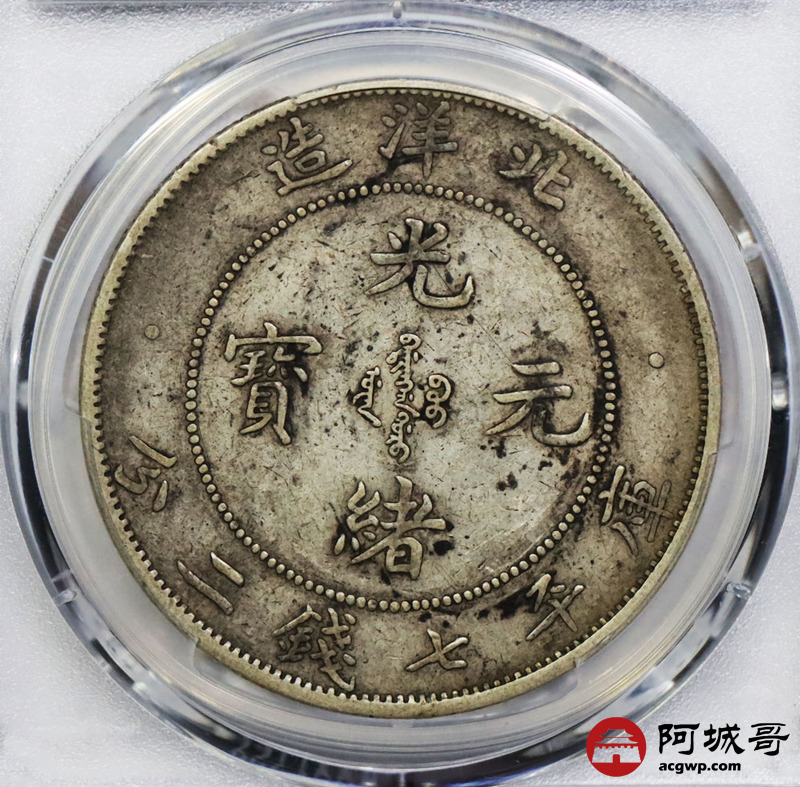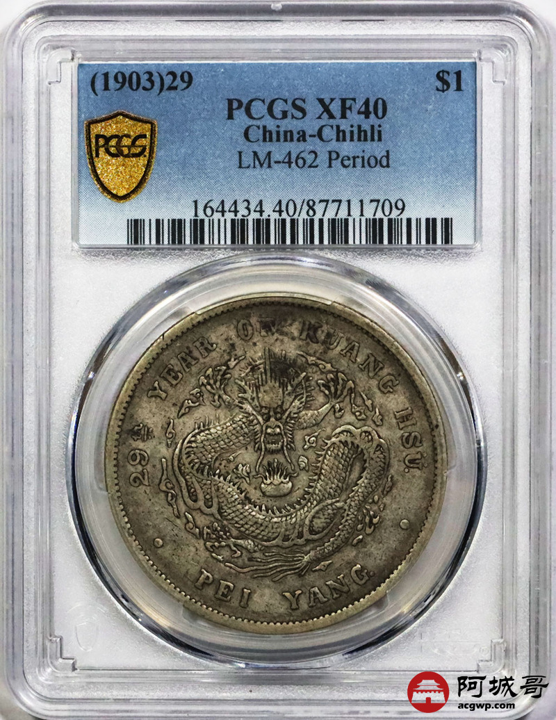 Lot:1564 1903光绪二十九年 北洋造光绪元宝库平七钱二分银币一枚,G后点,原味 PCGS XF40评级编号:87711709