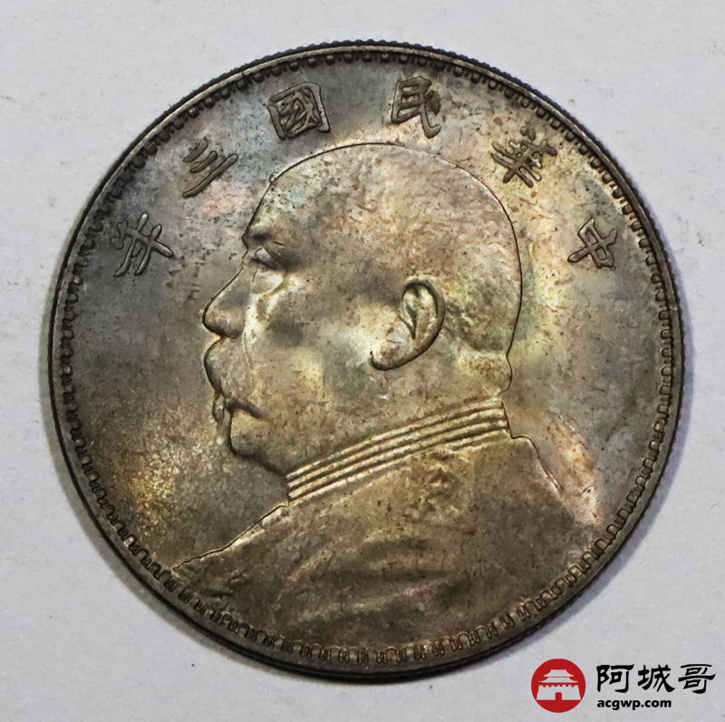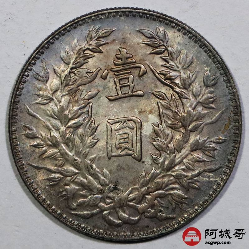 Lot:1809 1914民国三年袁世凯像壹圆 三角圆银币一枚,五彩原光底板, 完全未使用品