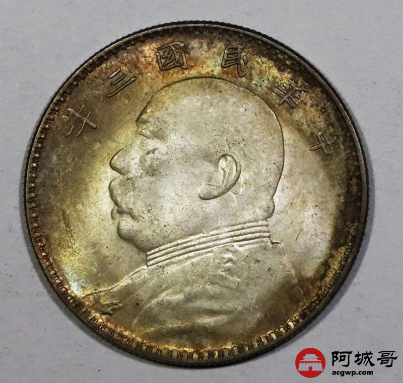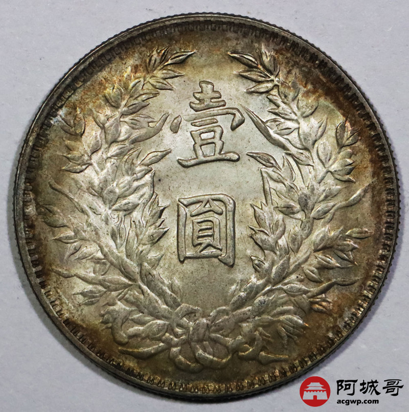 Lot:1807 1914民国三年袁世凯像壹圆 三角圆银币一枚,原光环彩,完全未使用品