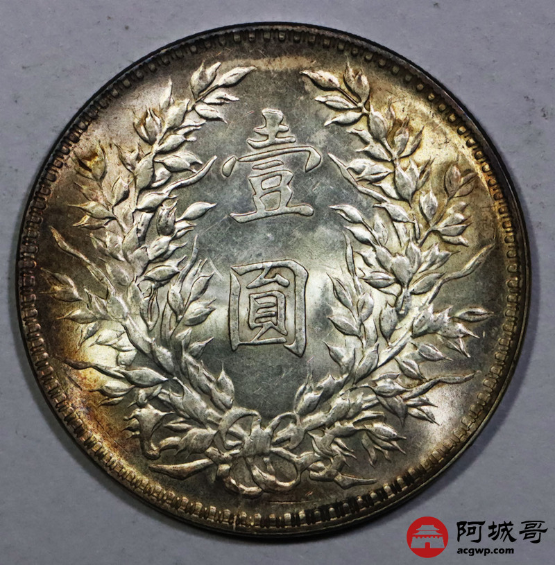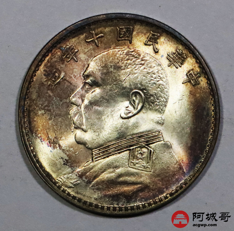 Lot:1806 1921民国十年袁世凯像银币一枚,完全未使用品,五彩底板