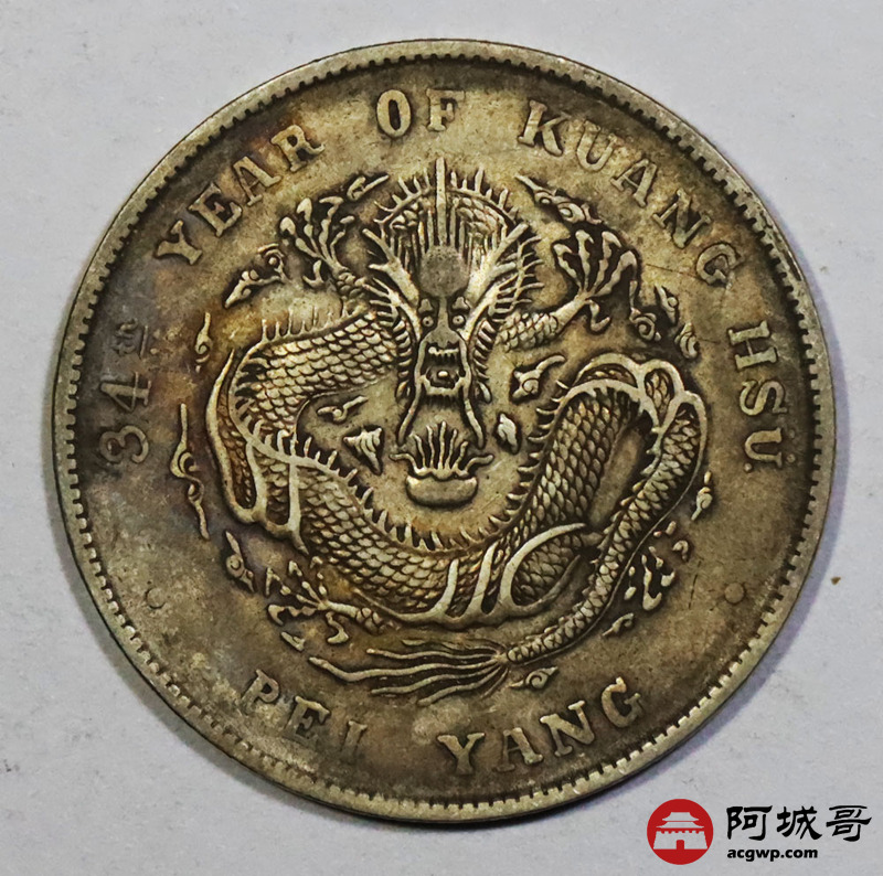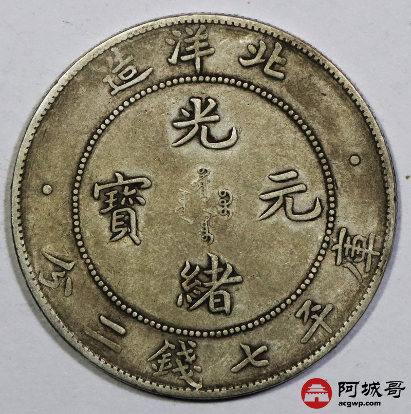 Lot:1775 1908光绪三十四年北洋造光绪元宝库平七钱二分银币一枚,原味