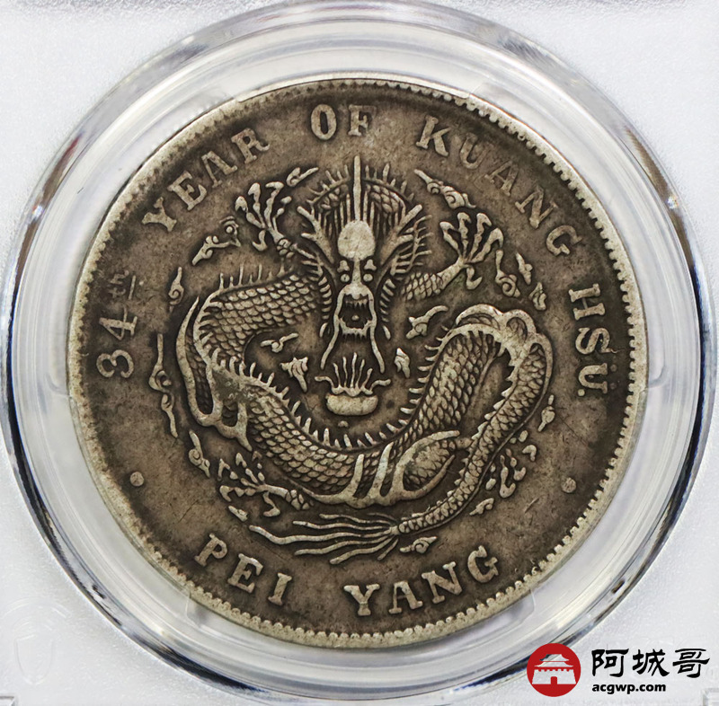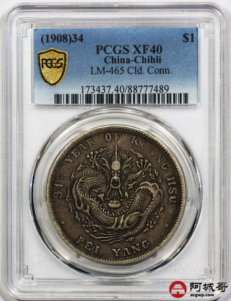 Lot:1603 1908光绪三十四年北洋造光绪元宝库平七钱二分银币一枚,原味传世老味道 PCGS XF40评级编号:88777489