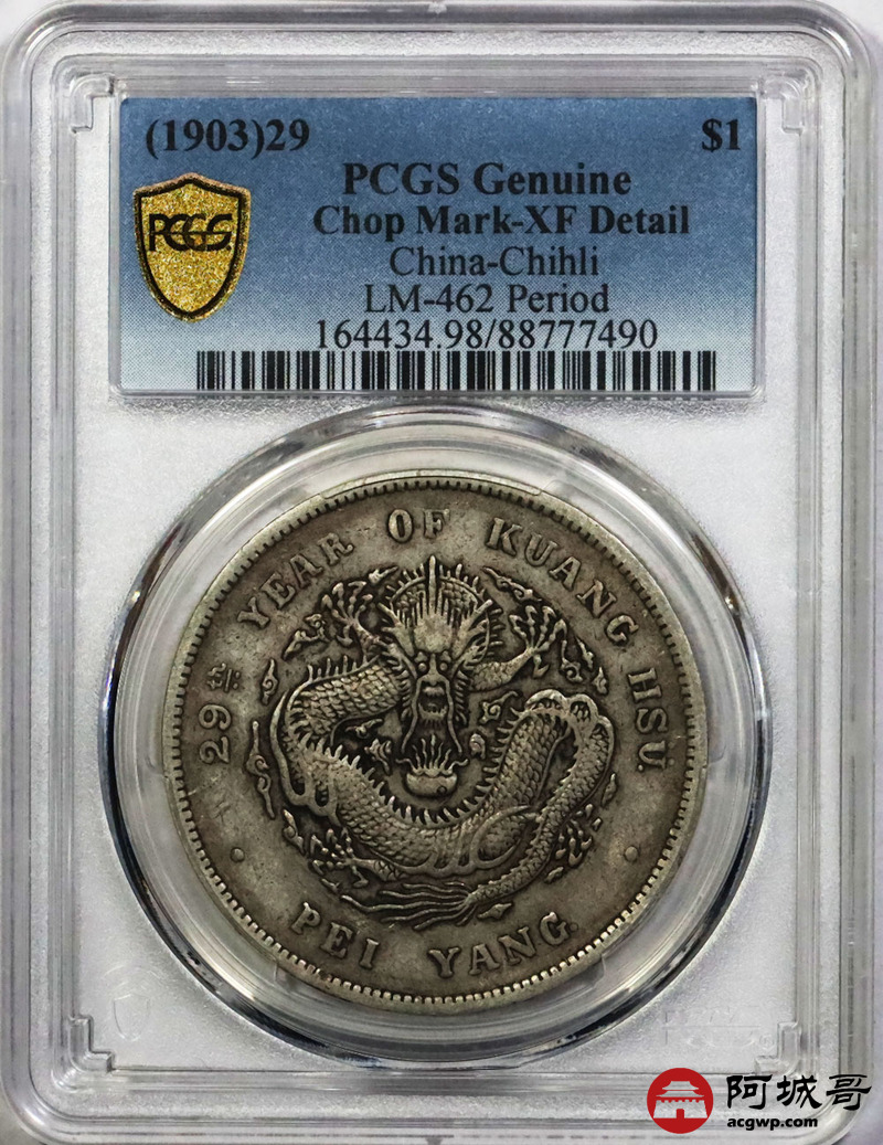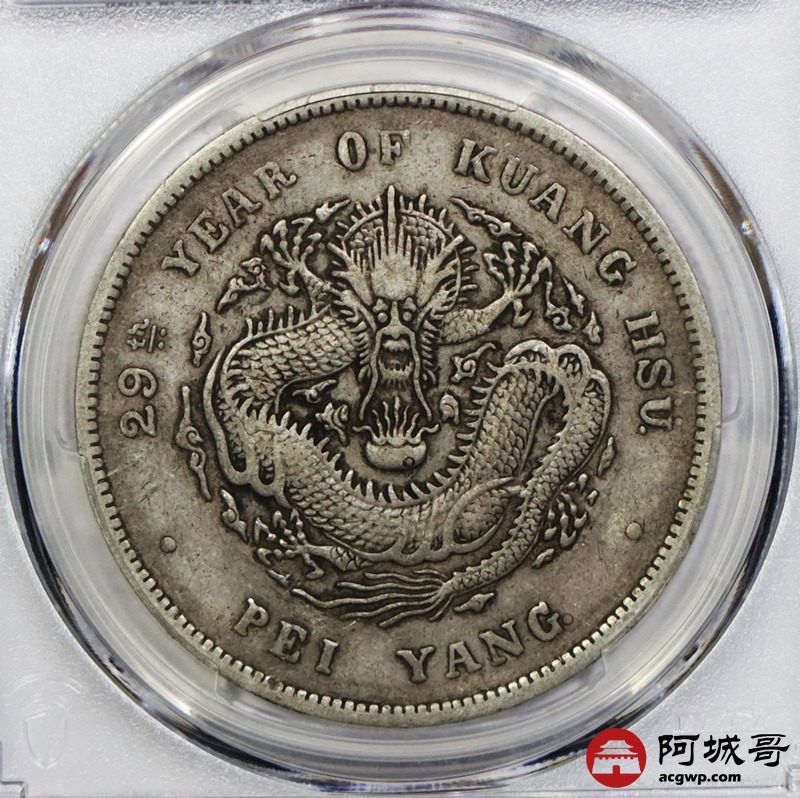 Lot:1577 1903光绪二十九年北洋造光绪元宝库平七钱二分银币一枚,G后点,原味 PCGS XF98评级编号:88777490
